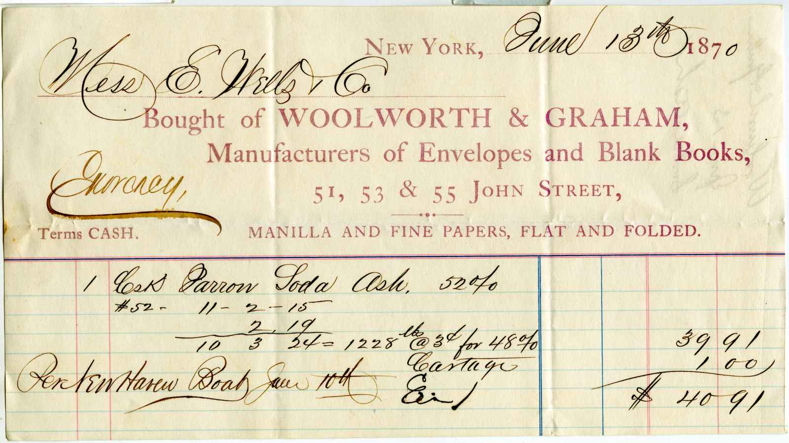 invoice; Woolworth & Graham - Manufacturers of Envelopes and Blank Books - N.Y.