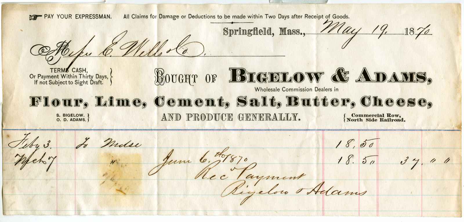 | dc.description | receipt; Bigelow & Adams - Flour, Butter, Cheese, Eggs, Beans, &c. - Springfield, Ma. | |