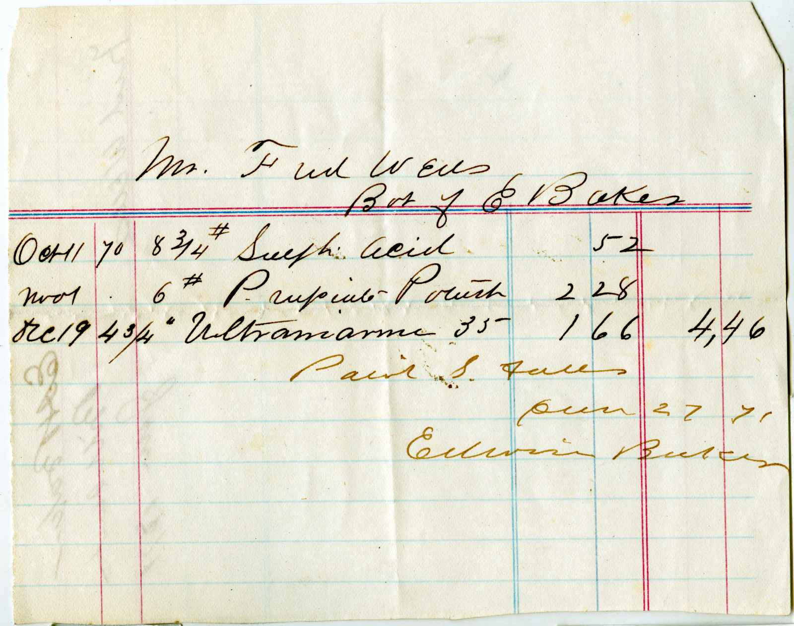 incoming correspondence to the papermaking company of Elisha Wells - circa 1870