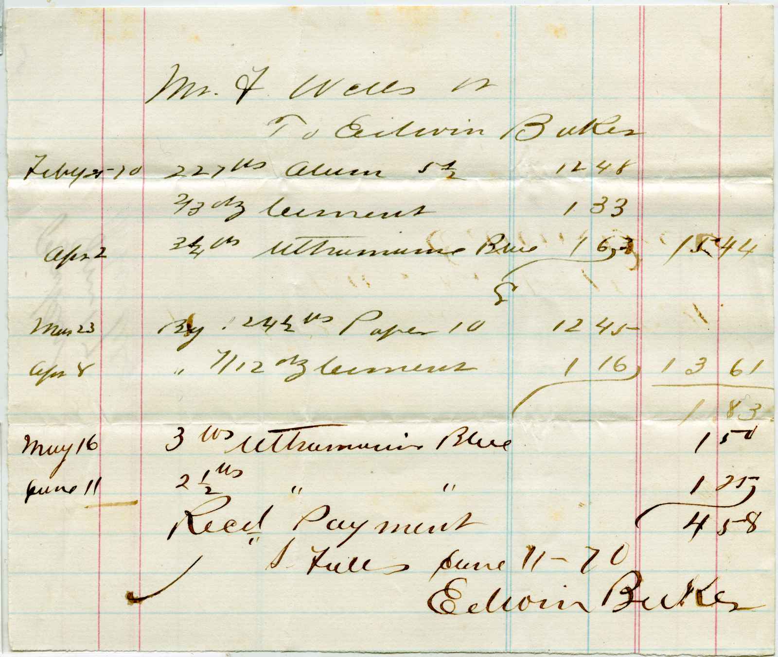 incoming correspondence to the papermaking company of Elisha Wells - circa 1870