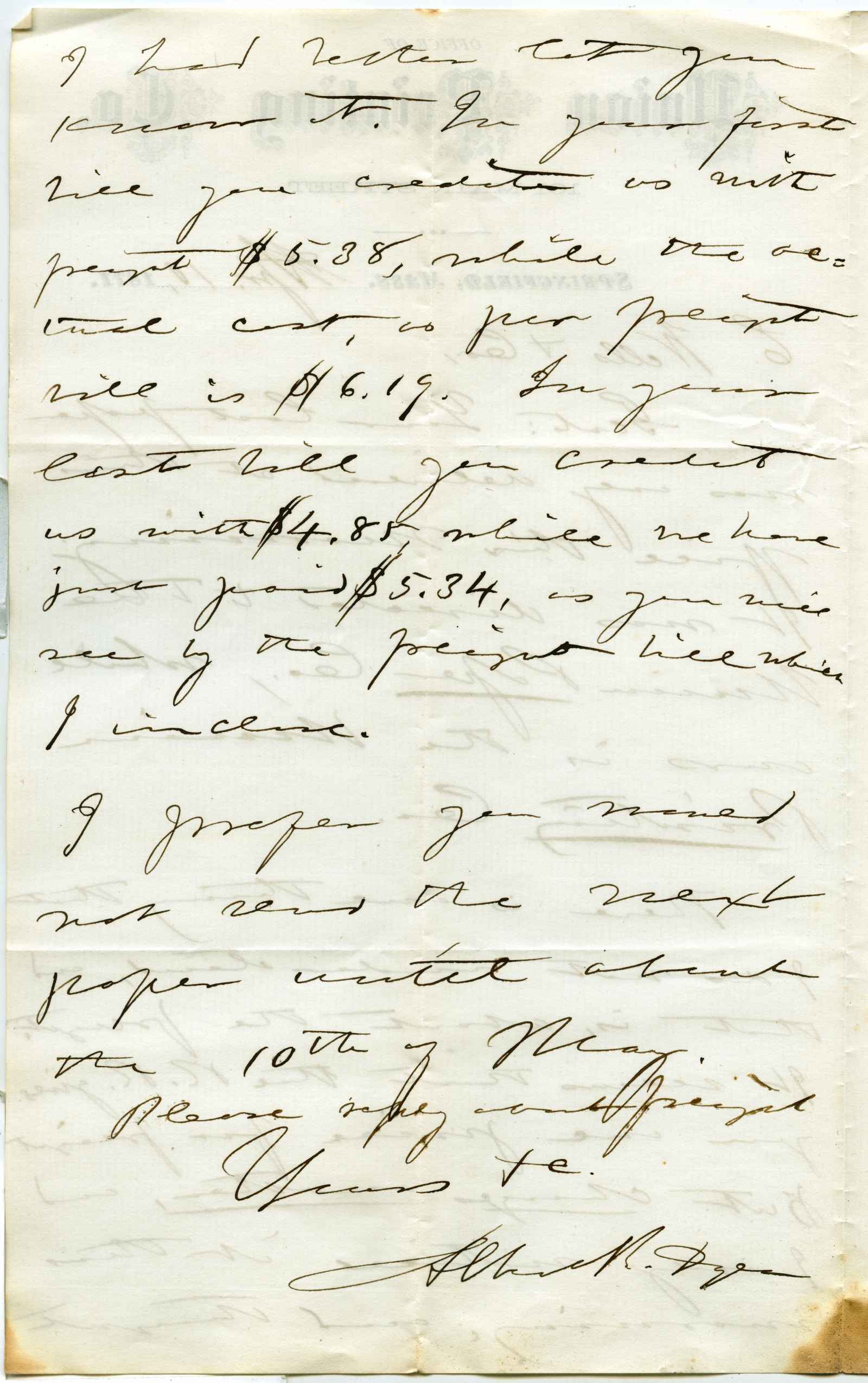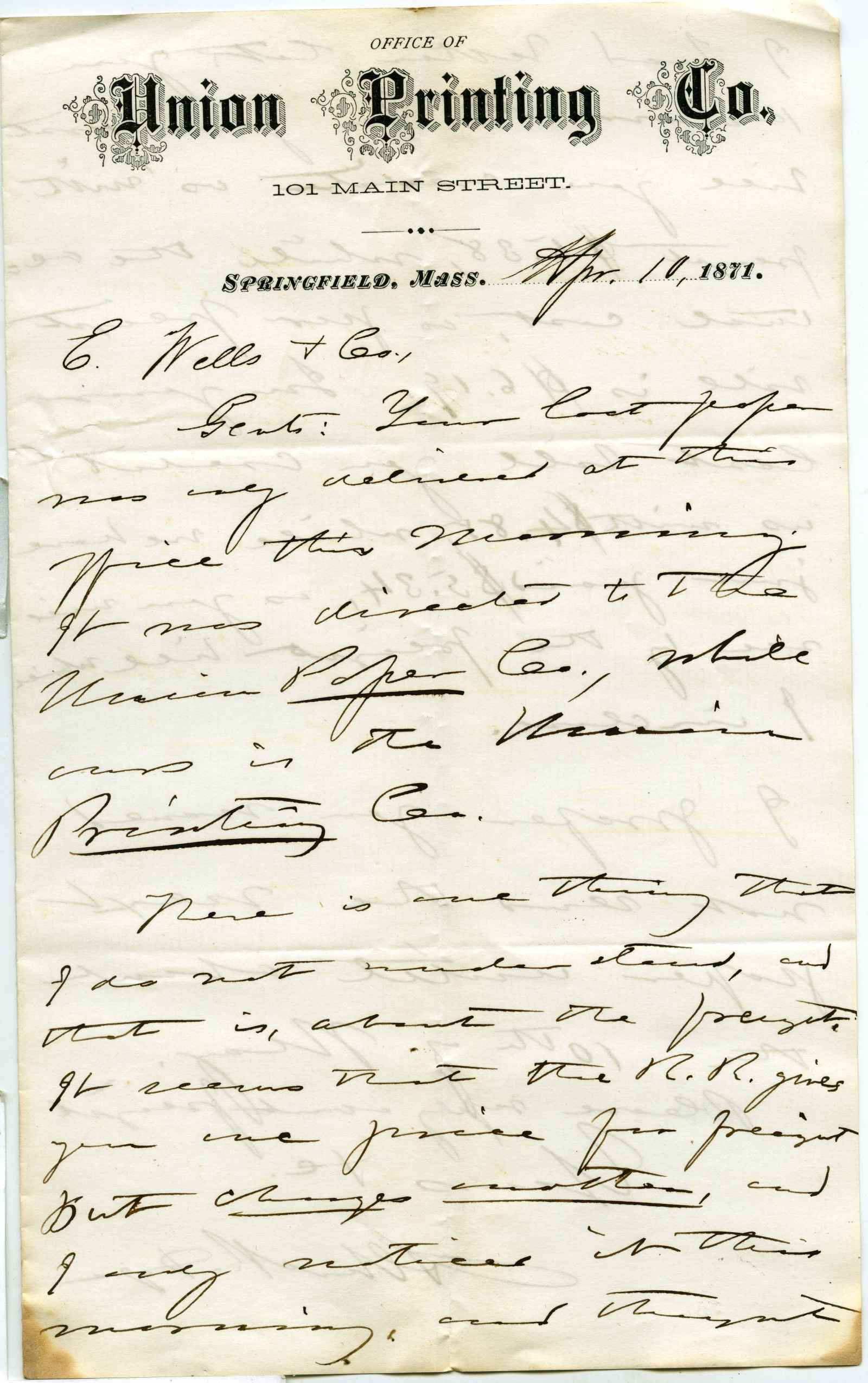 letter; Union Printing Co. - Business letter - Springfield, Ma.