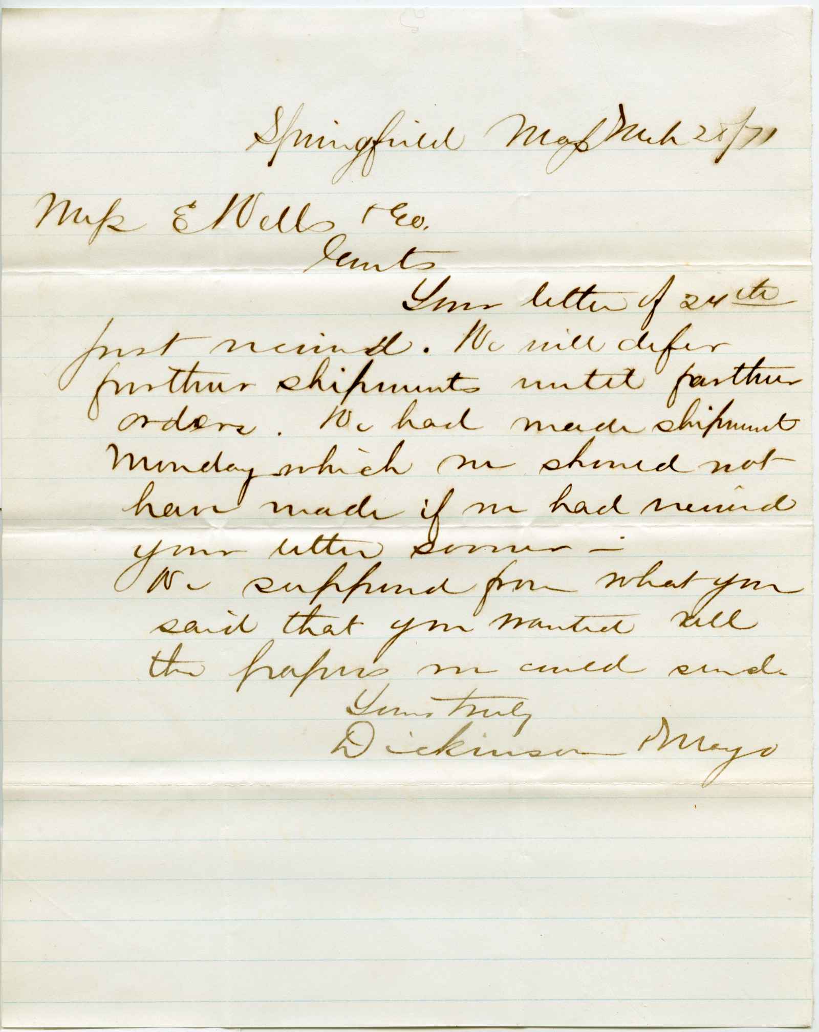 letter; Dickinson & Mayo - Paper Stock & Old Metals - Springfield, Ma.