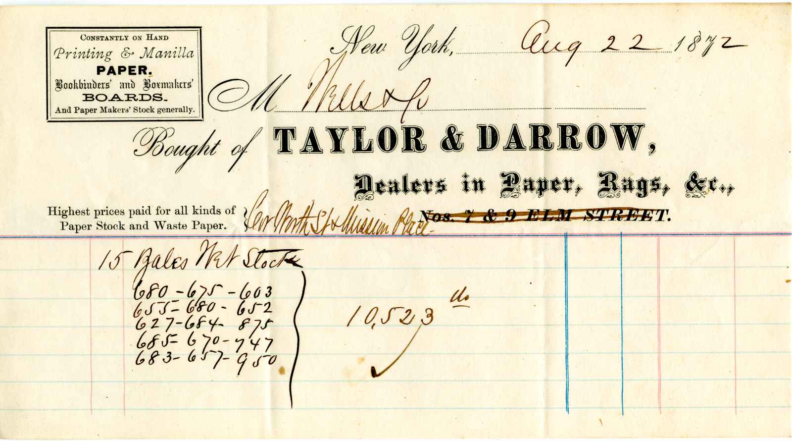 | dc.description | statement; Taylor & Darrow - Worth St.& Mission Place - N.Y. Dealers in Paper, Rags, &c. | |