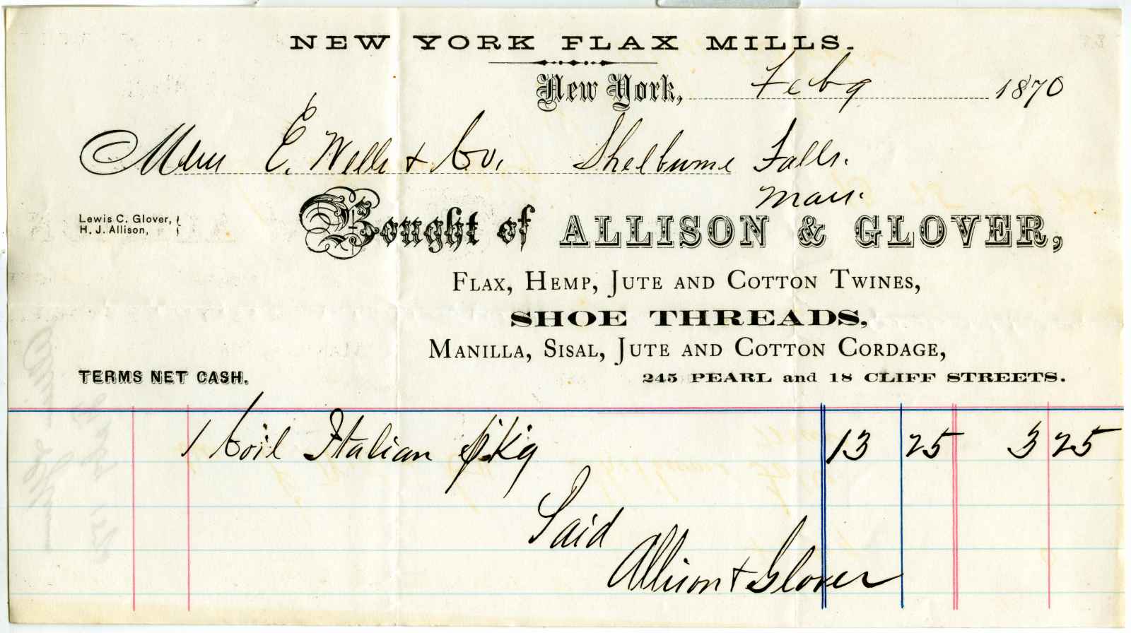 receipt; Allison & Glover - Flax Mills - N.Y.