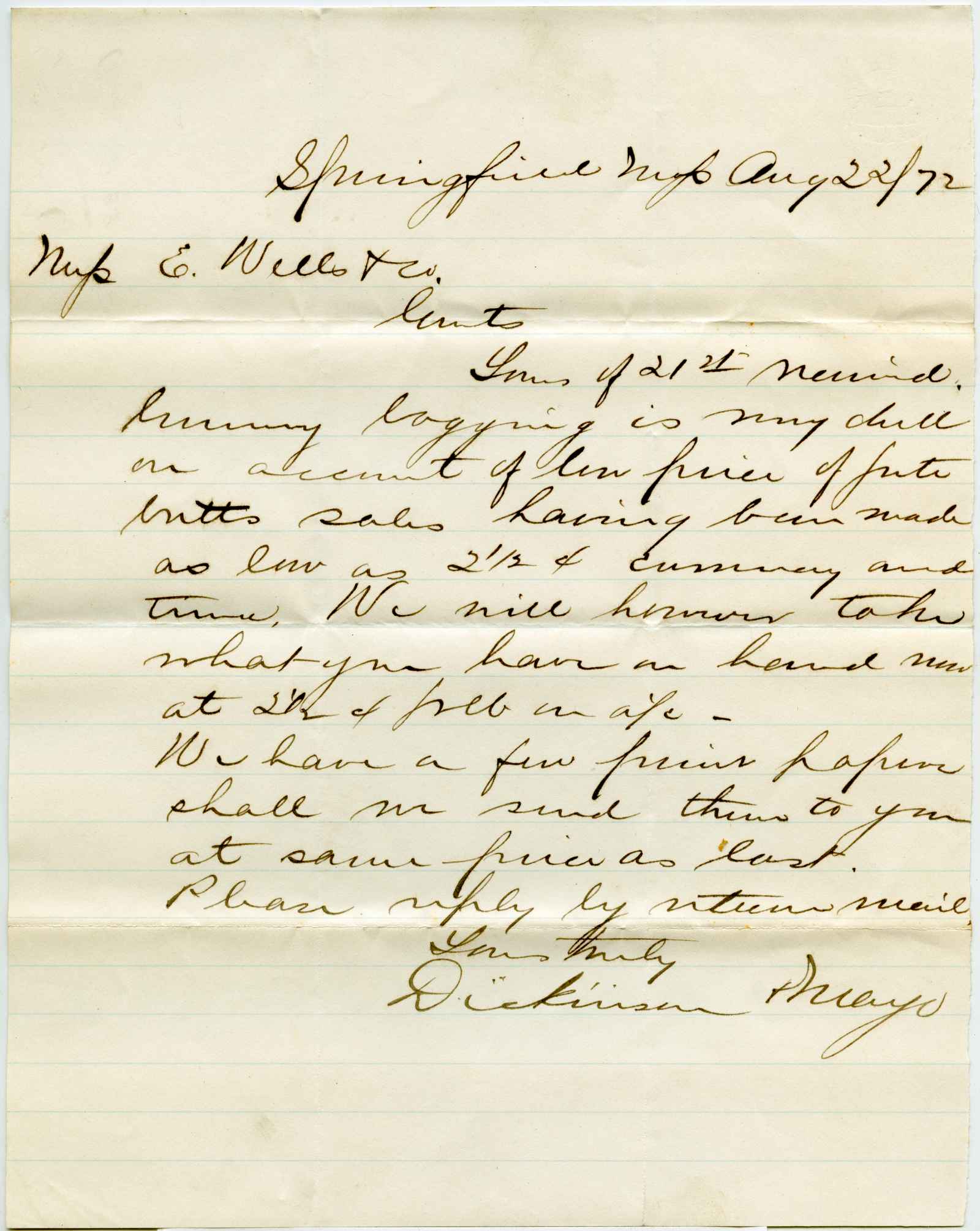 letter; Dickinson & Mayo - Paper Stock & Old Metals - Springfield, Ma.