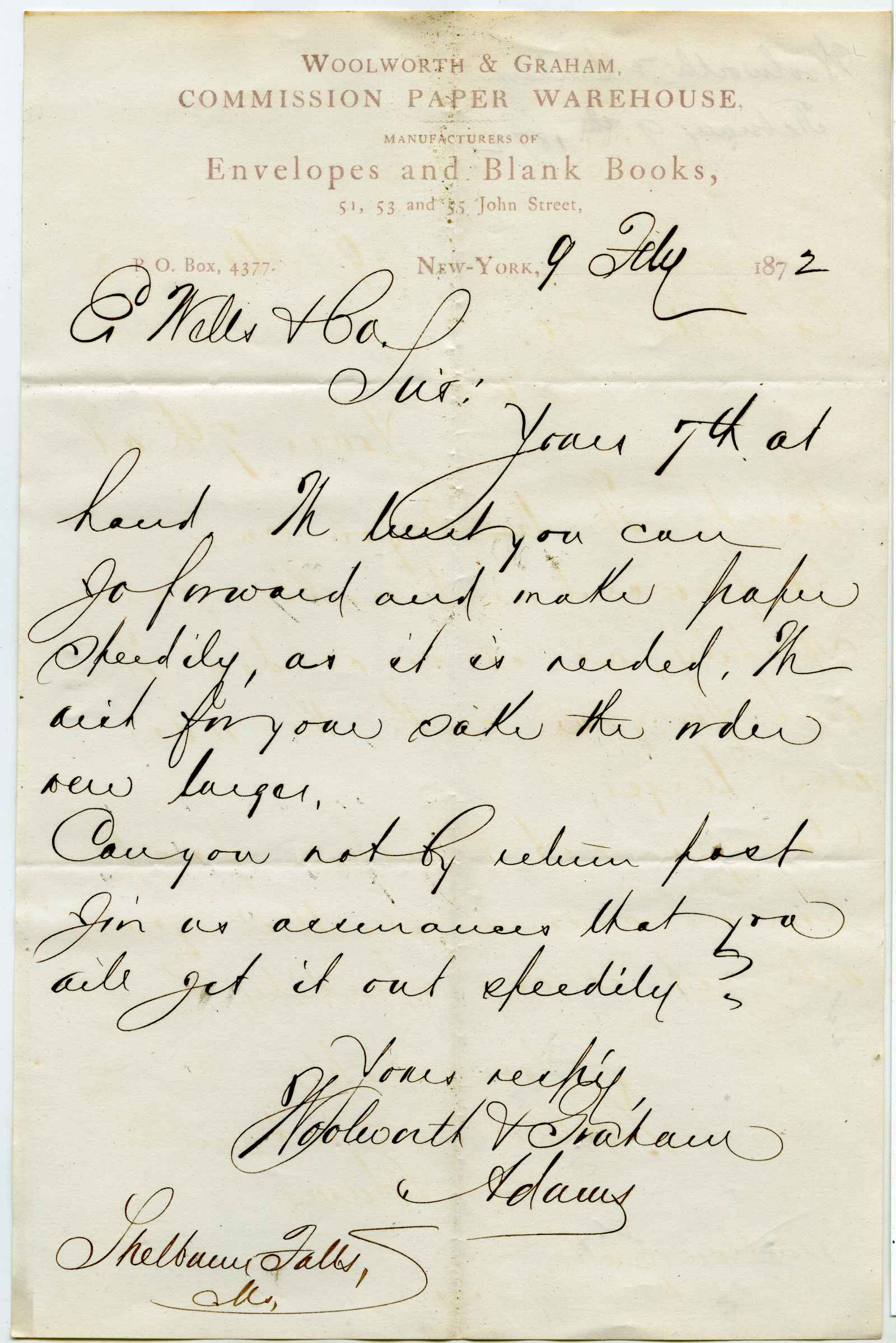 letter; Woolworth & Graham - Manufacturers of Envelopes and Blank Books - N.Y.
