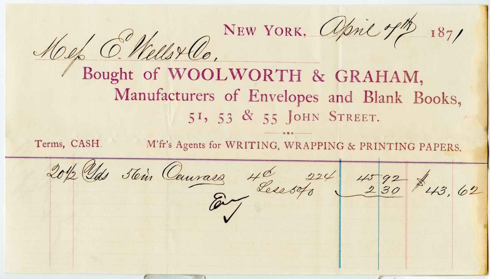 invoice; Woolworth & Graham - Manufacturers of Envelopes and Blank Books - N.Y.