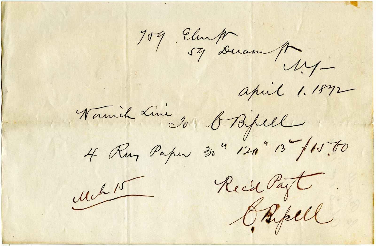 receipt; Bissell, Champion - N.Y.