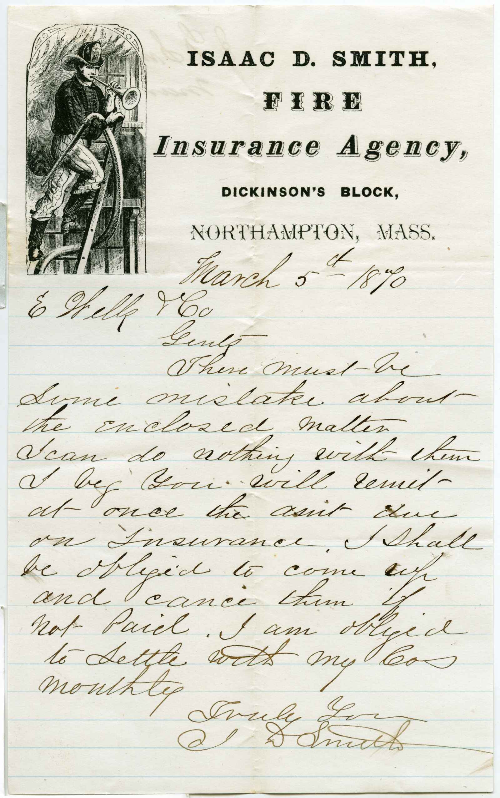 letter; Smith, Isaac D. - Fire Insurance - Northampton, Ma.