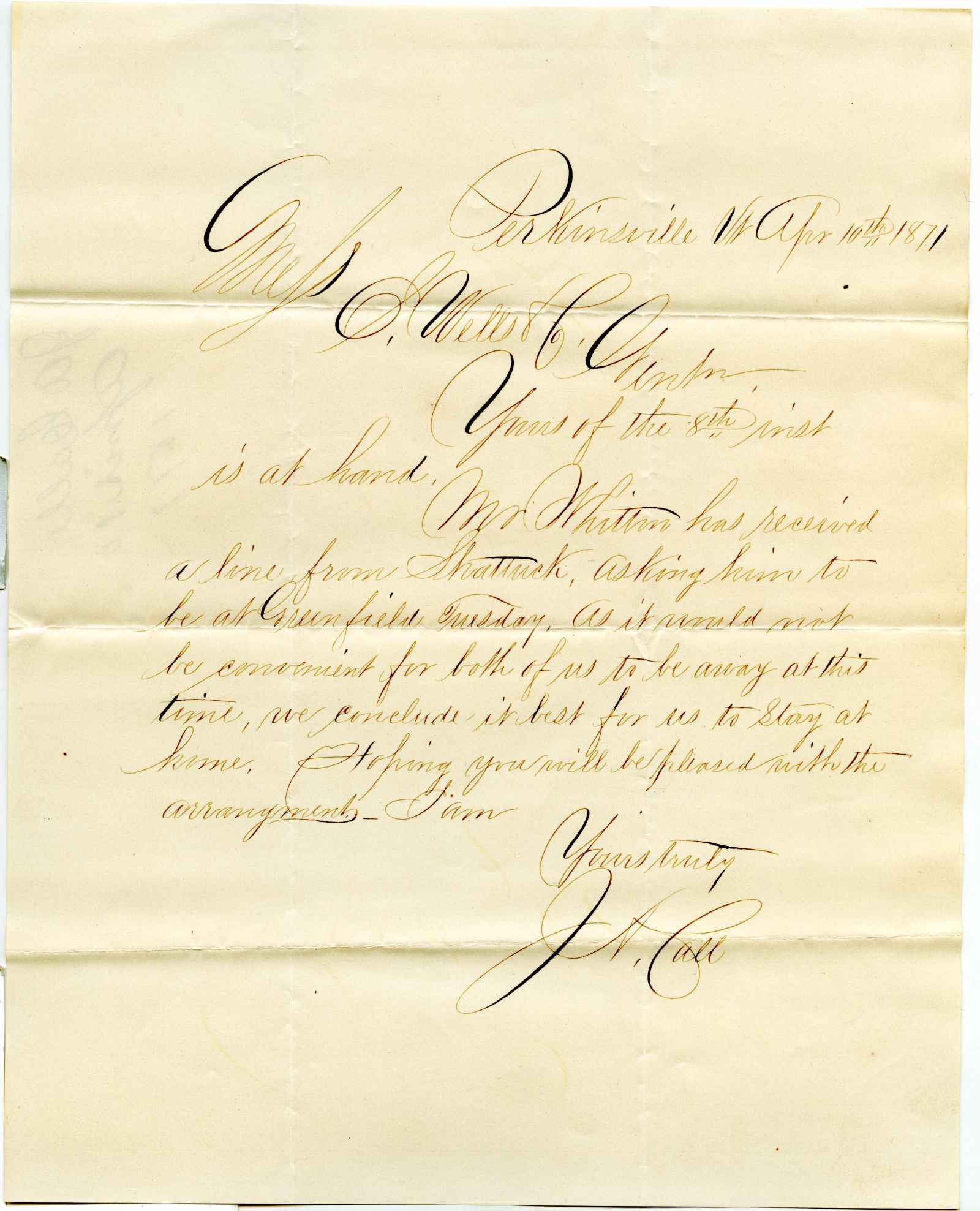 letter; Call, J. A. - Meeting at Greenfield - Perkinsville, Vt.