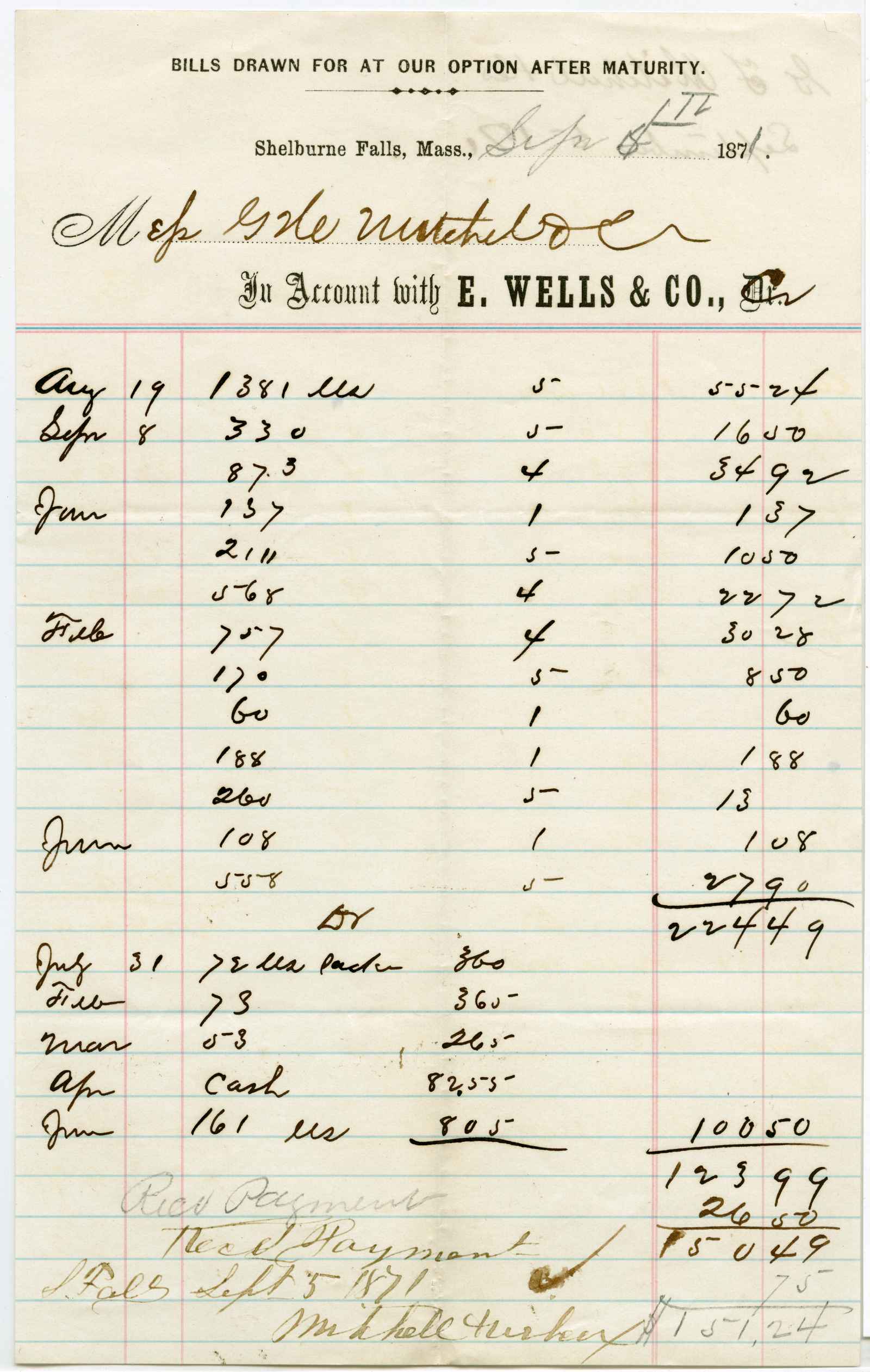 account; Wells, E. & Co. - Manufacturer of Printing Paper - Shelburne Falls, Ma.
