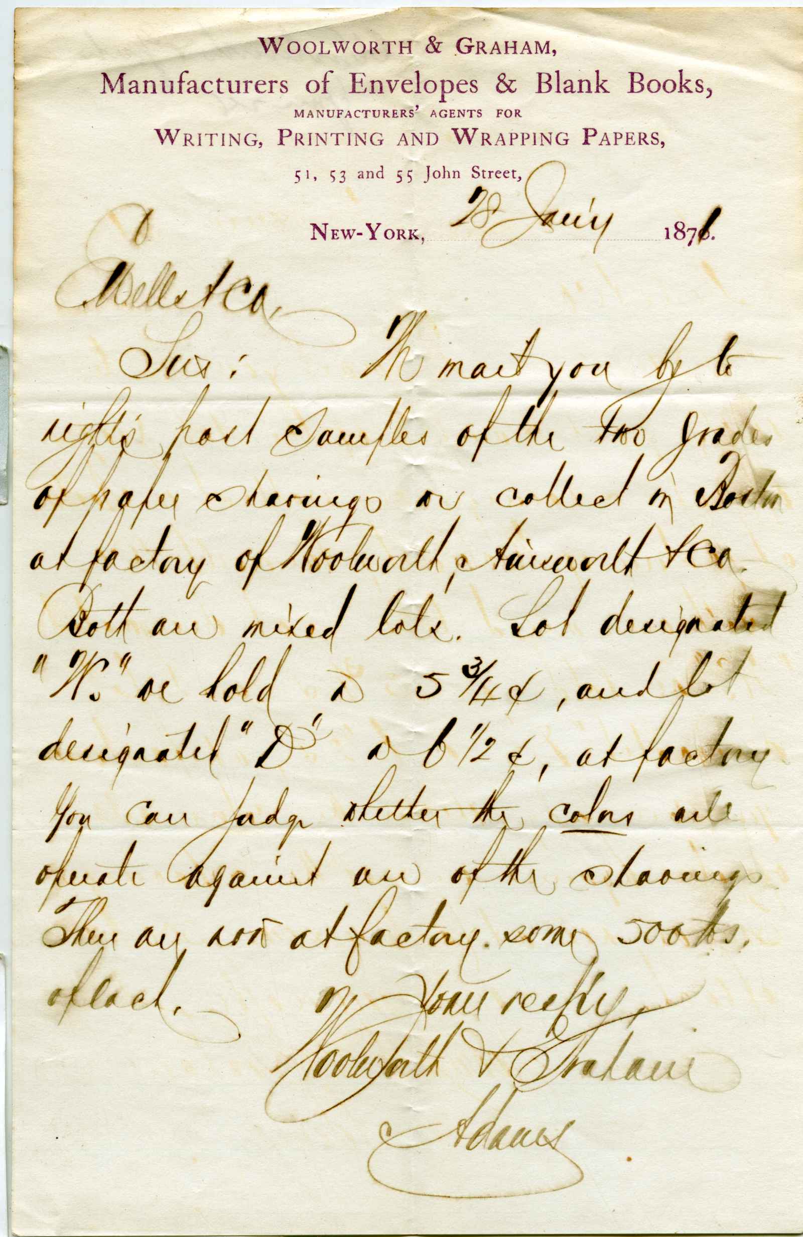 letter; Woolworth & Graham - Manufacturers of Envelopes and Blank Books - N.Y.