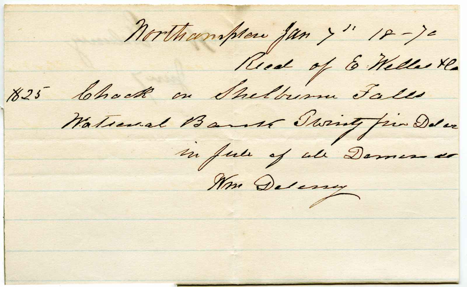 receipt; Delaney, William - Machinery Sales - Northampton, Ma.