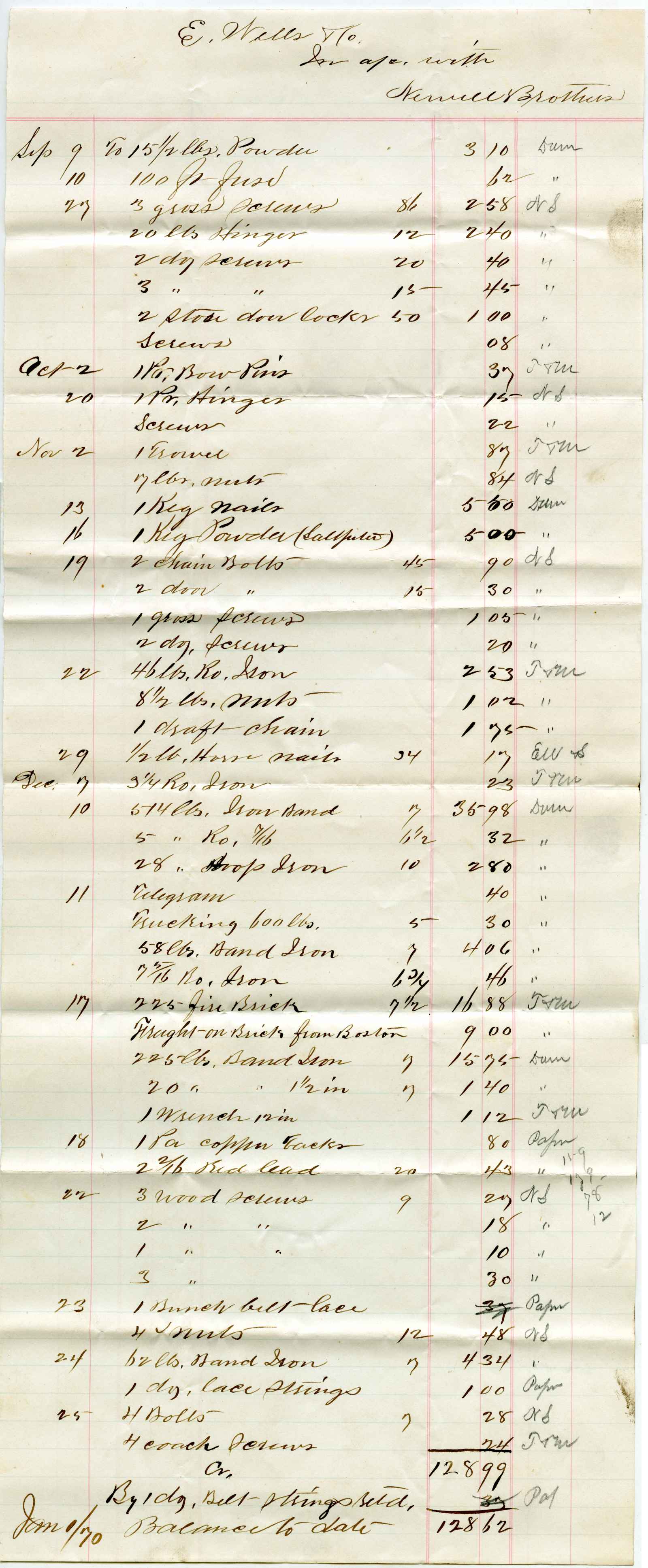 incoming correspondence to the papermaking company of Elisha Wells - circa 1870