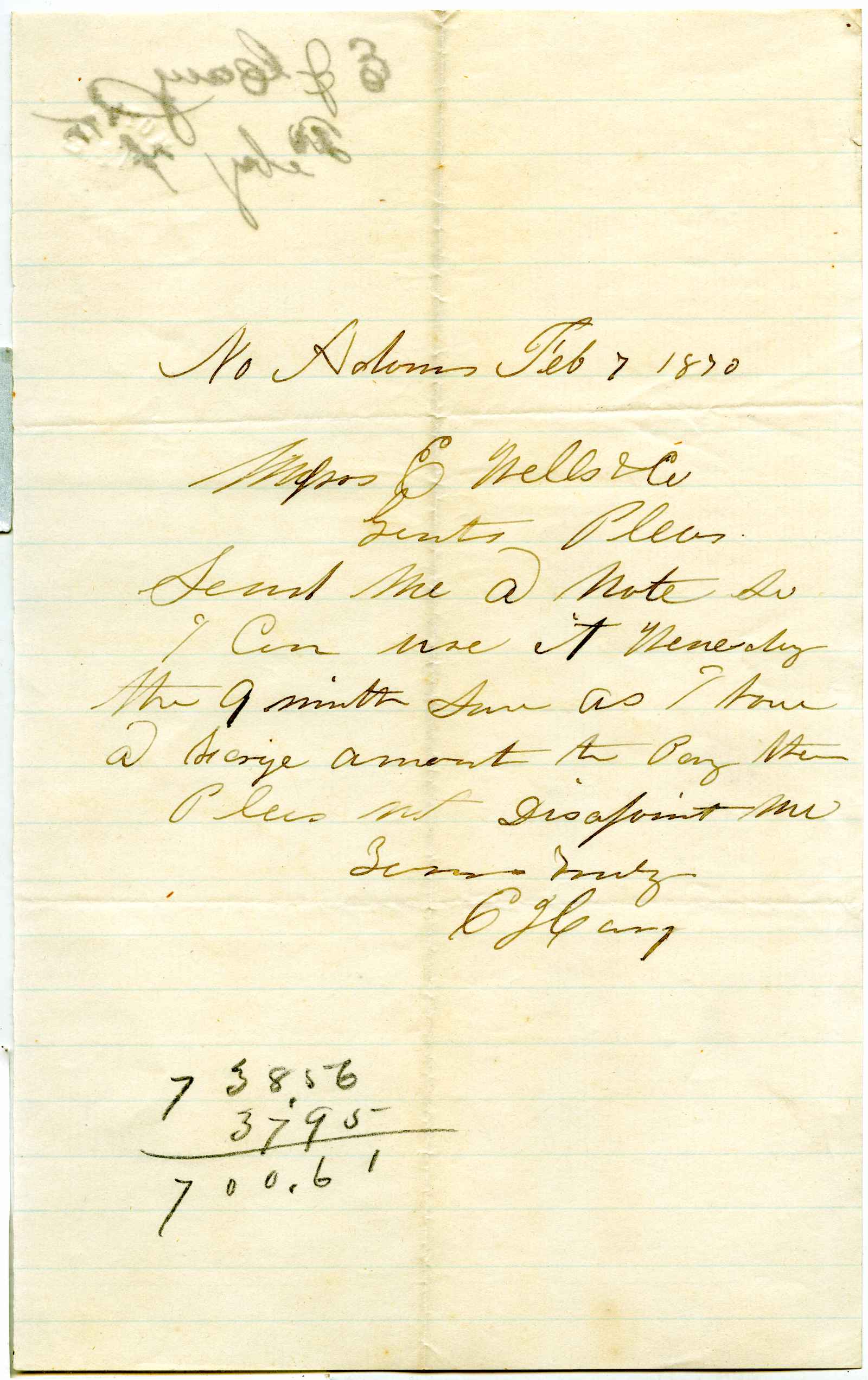incoming correspondence to the papermaking company of Elisha Wells - circa 1870