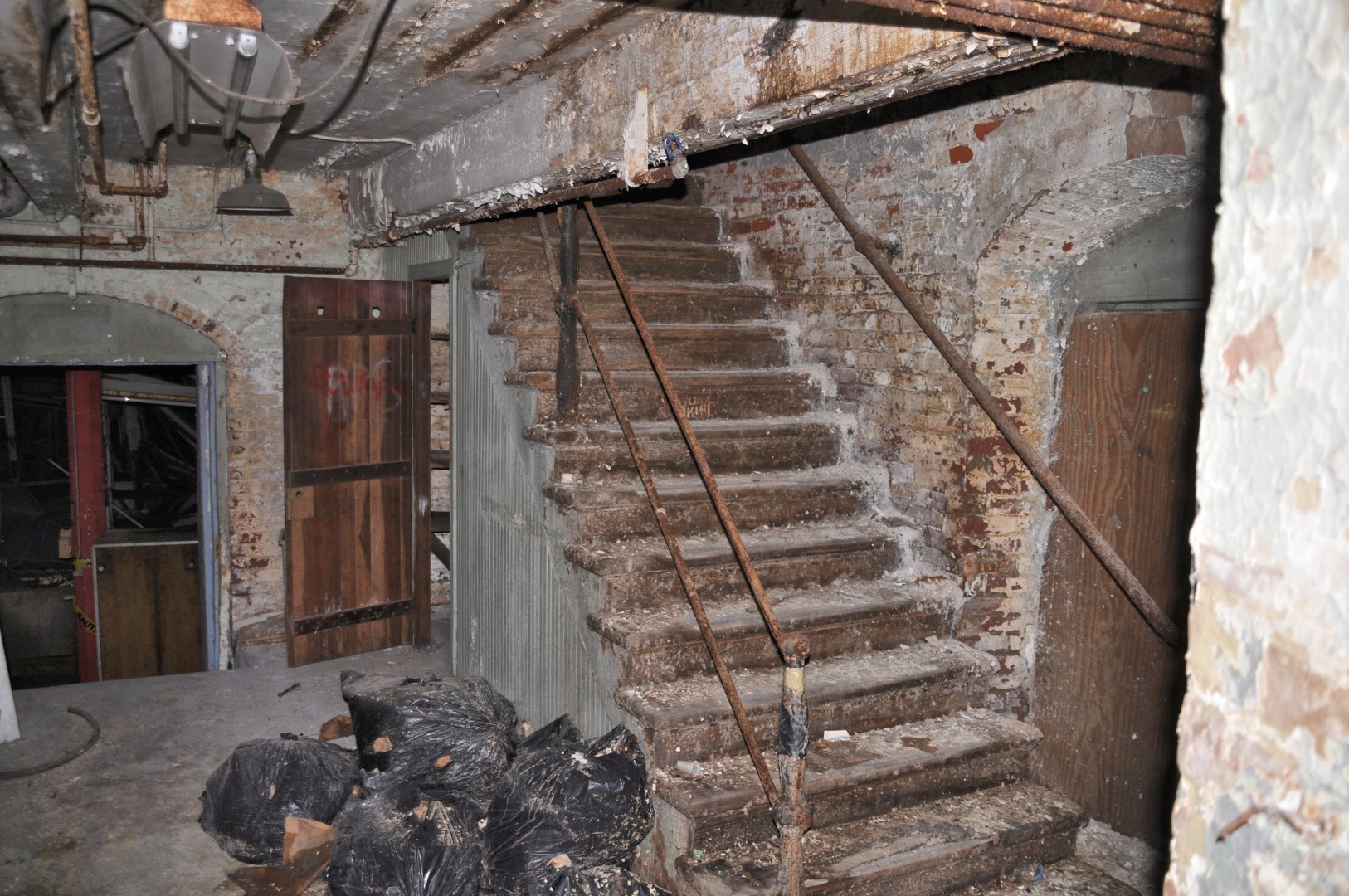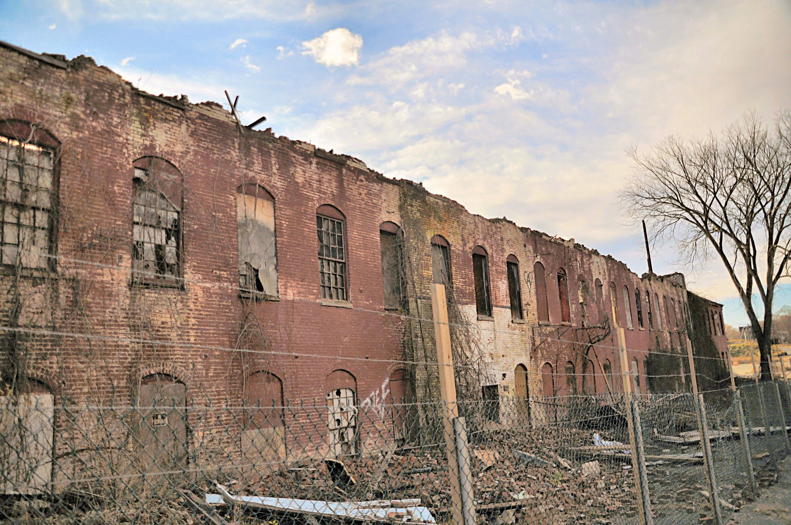 - South west corner. The building is crumbling . . . the fence keeps people out.