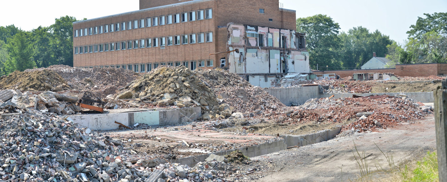A gallery of 26 photos showing the razing of the Farren Memorial Hospital.