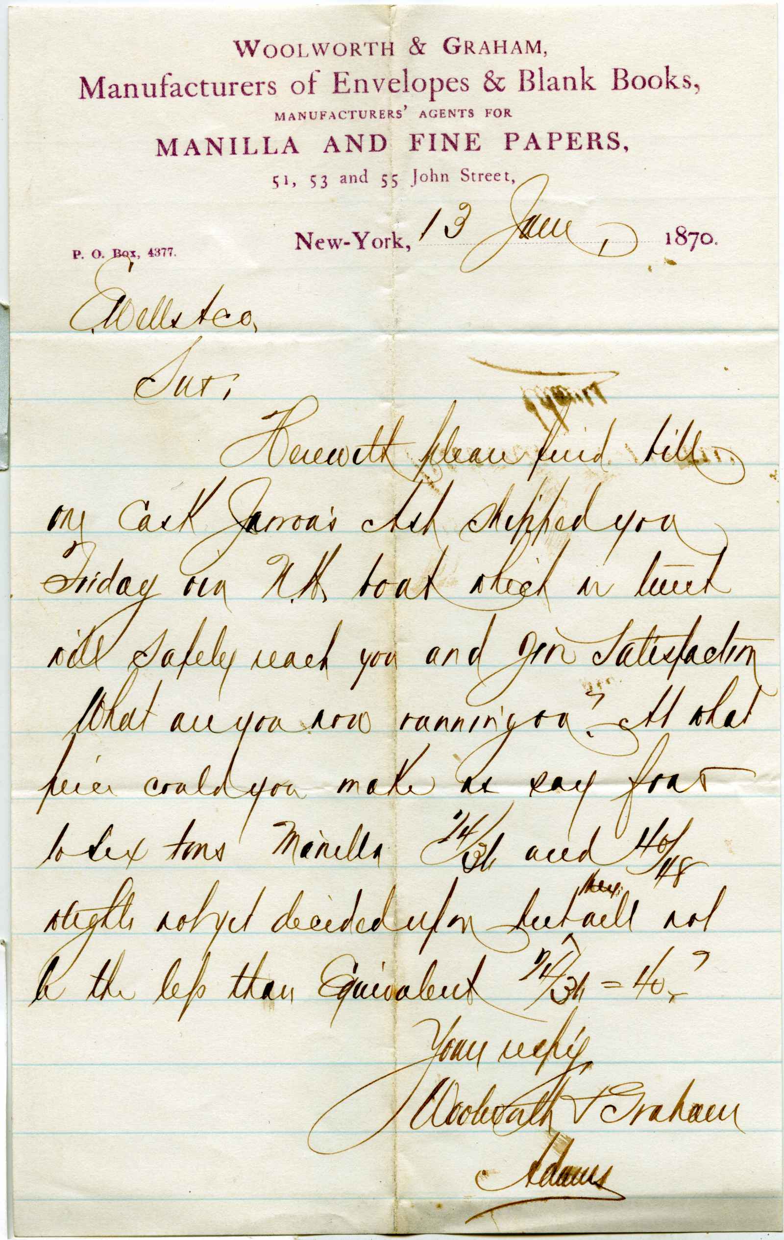letter; Woolworth & Graham - Manufacturers of Envelopes and Blank Books - N.Y.