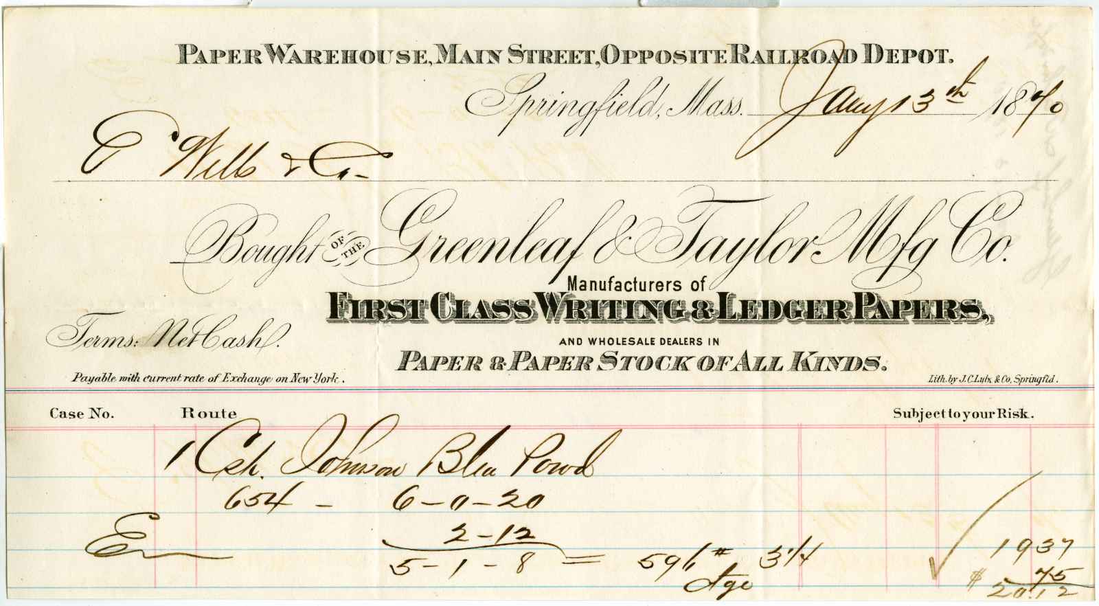 | dc.description | invoice; Greenleaf & Taylor Mfg. Co. - Paper Warehouse - Springfield, Ma. | |
