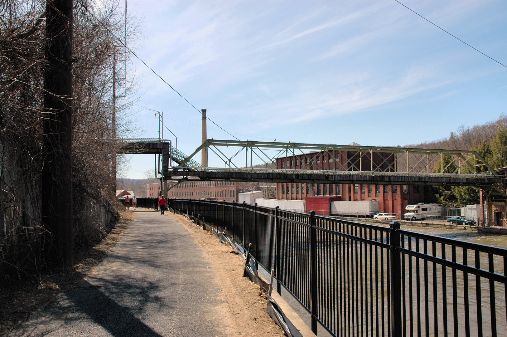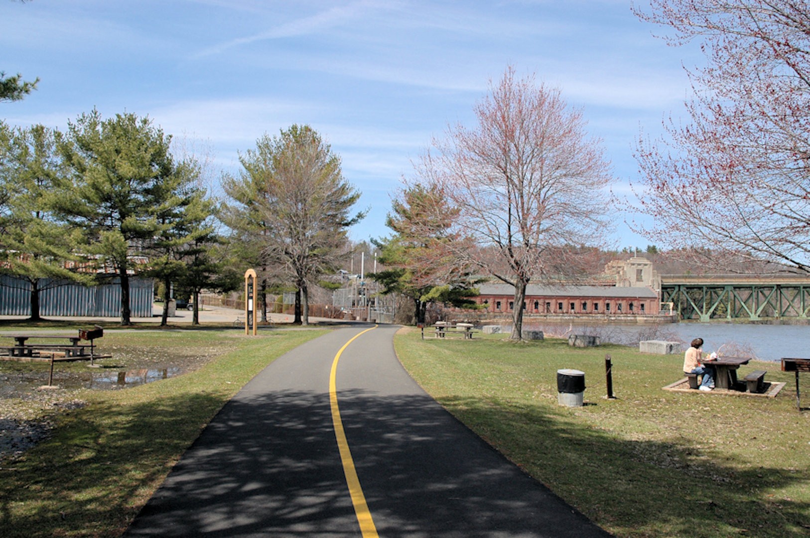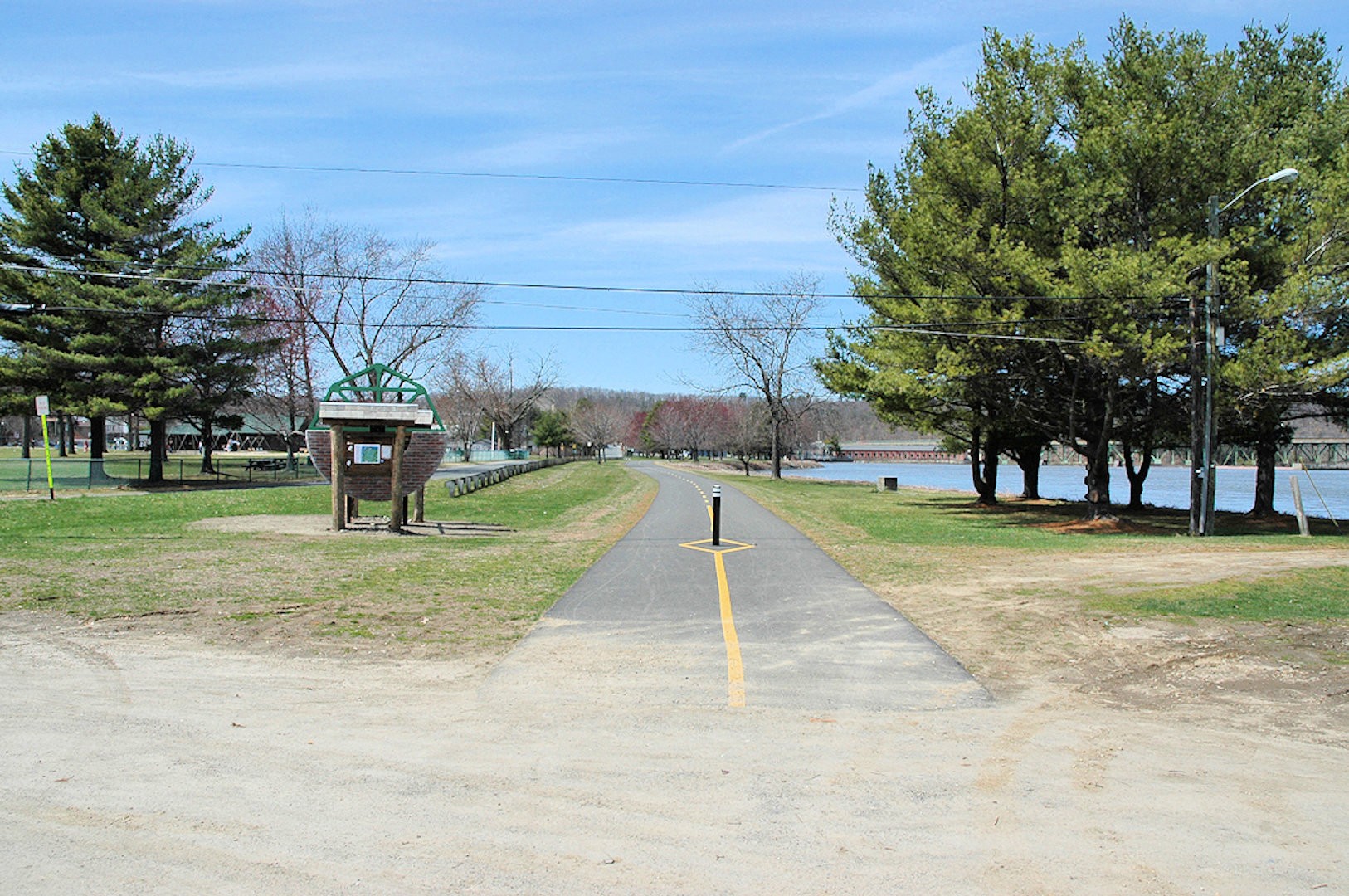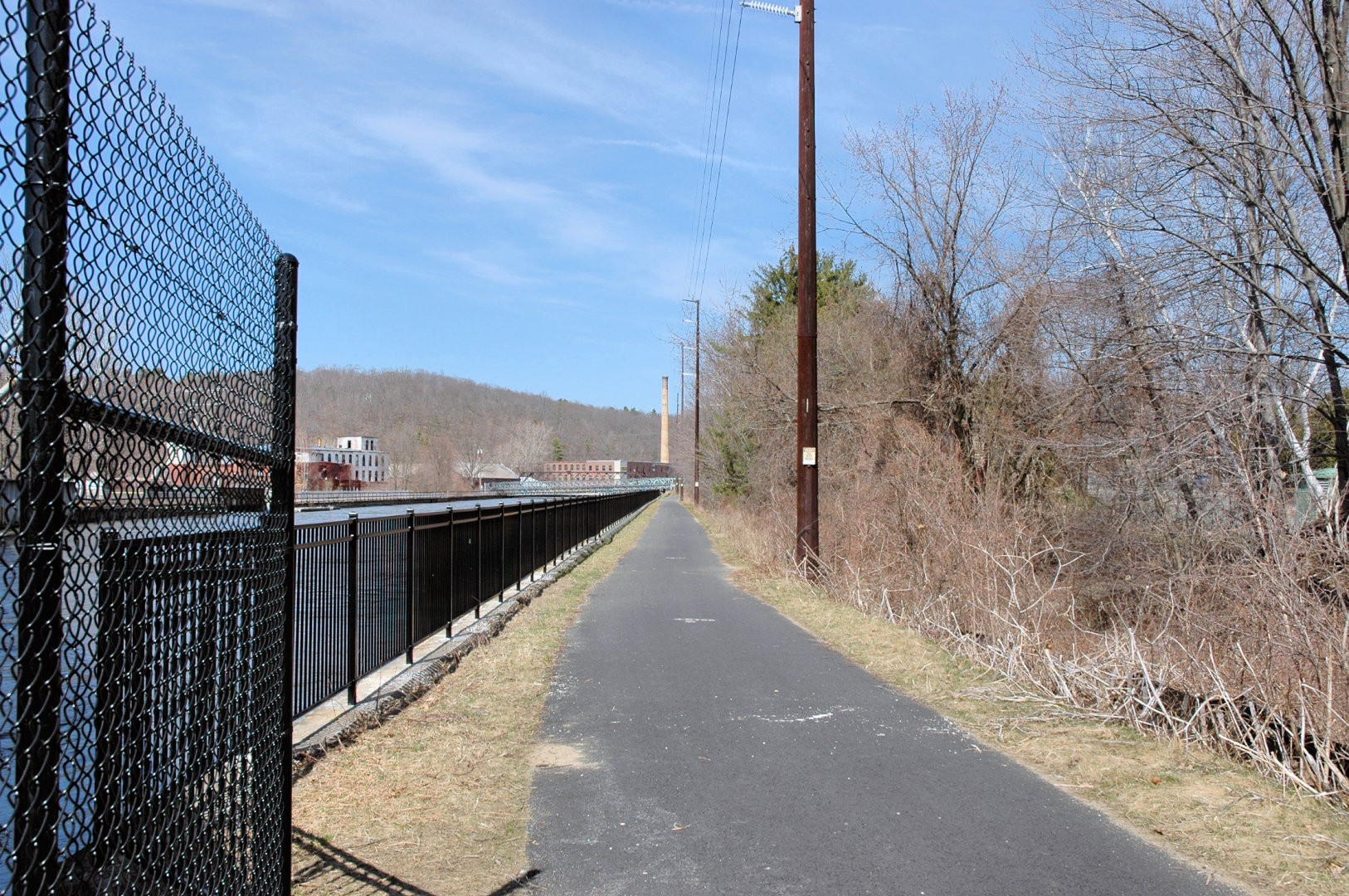 The Canalside Rail Trail (aka Bike Path) is a 3.8-mile paved trail on old railroad beds, from Unity Park in Turners Falls, Massachusetts, south to the East Deerfield RR yard. Motor vehicles are prohibited. The Rail Trail will--in the future--connect with the trail/bike path at Amherst, MA. Visionaries see the Rail Trail eventually heading to Northfield, MA, and points north from there.