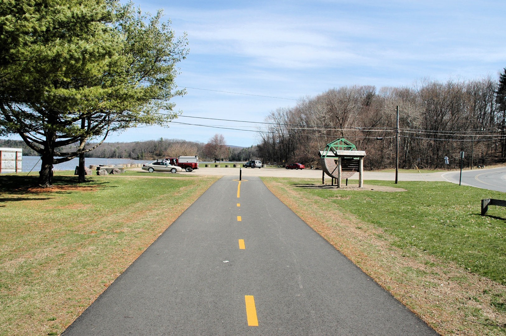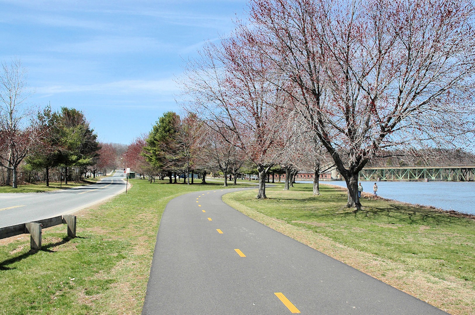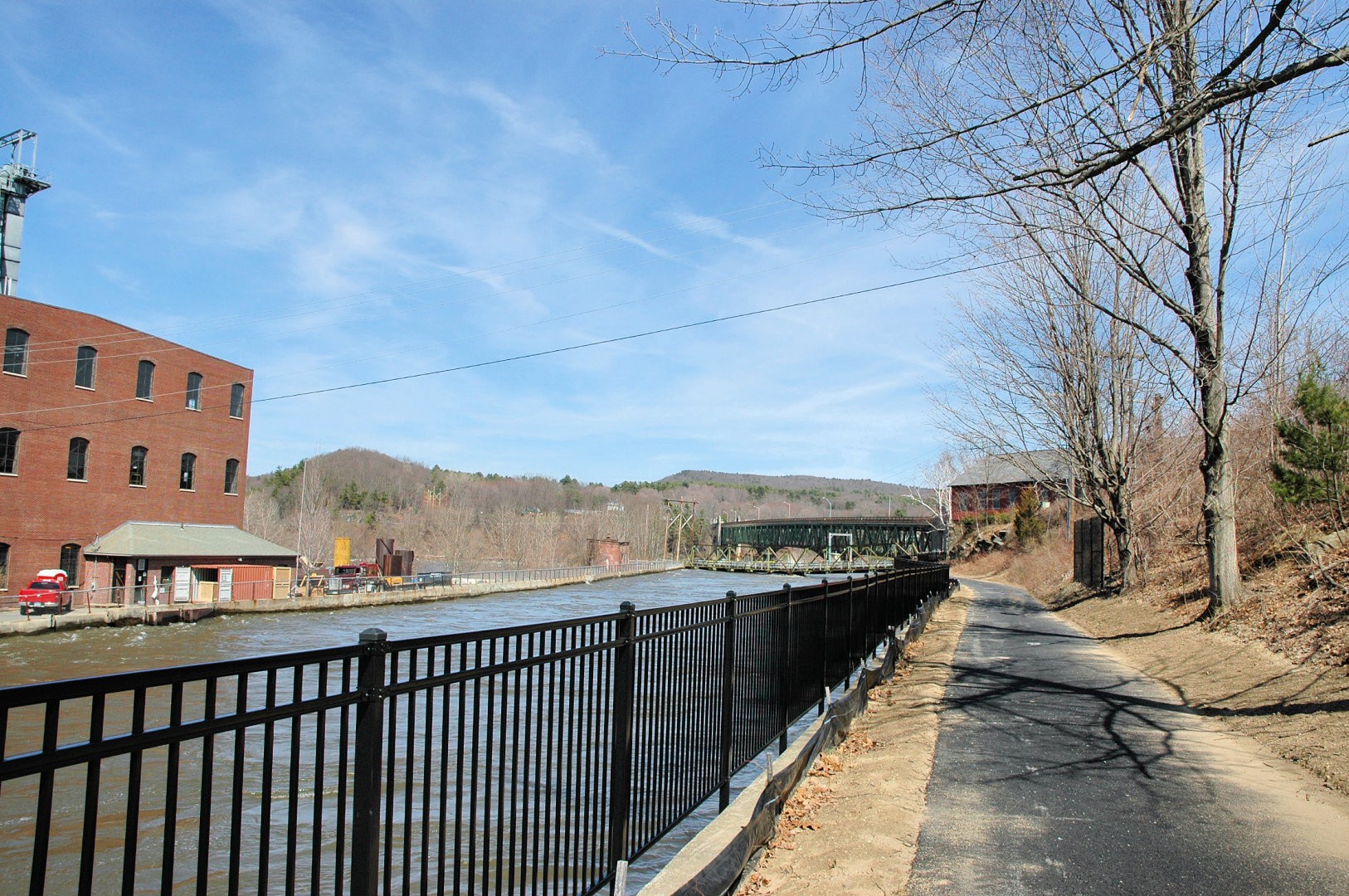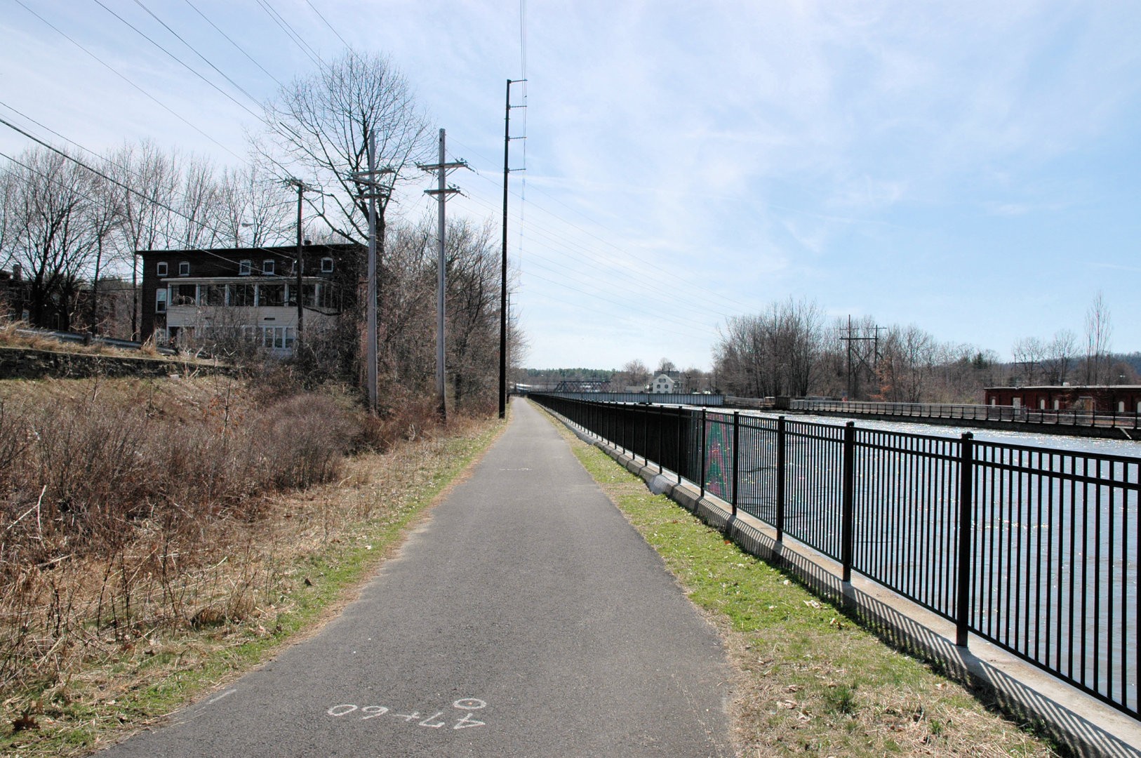 The Canalside Rail Trail (aka Bike Path) is a 3.8-mile paved trail on old railroad beds, from Unity Park in Turners Falls, Massachusetts, south to the East Deerfield RR yard. Motor vehicles are prohibited. The Rail Trail will--in the future--connect with the trail/bike path at Amherst, MA. Visionaries see the Rail Trail eventually heading to Northfield, MA, and points north from there.