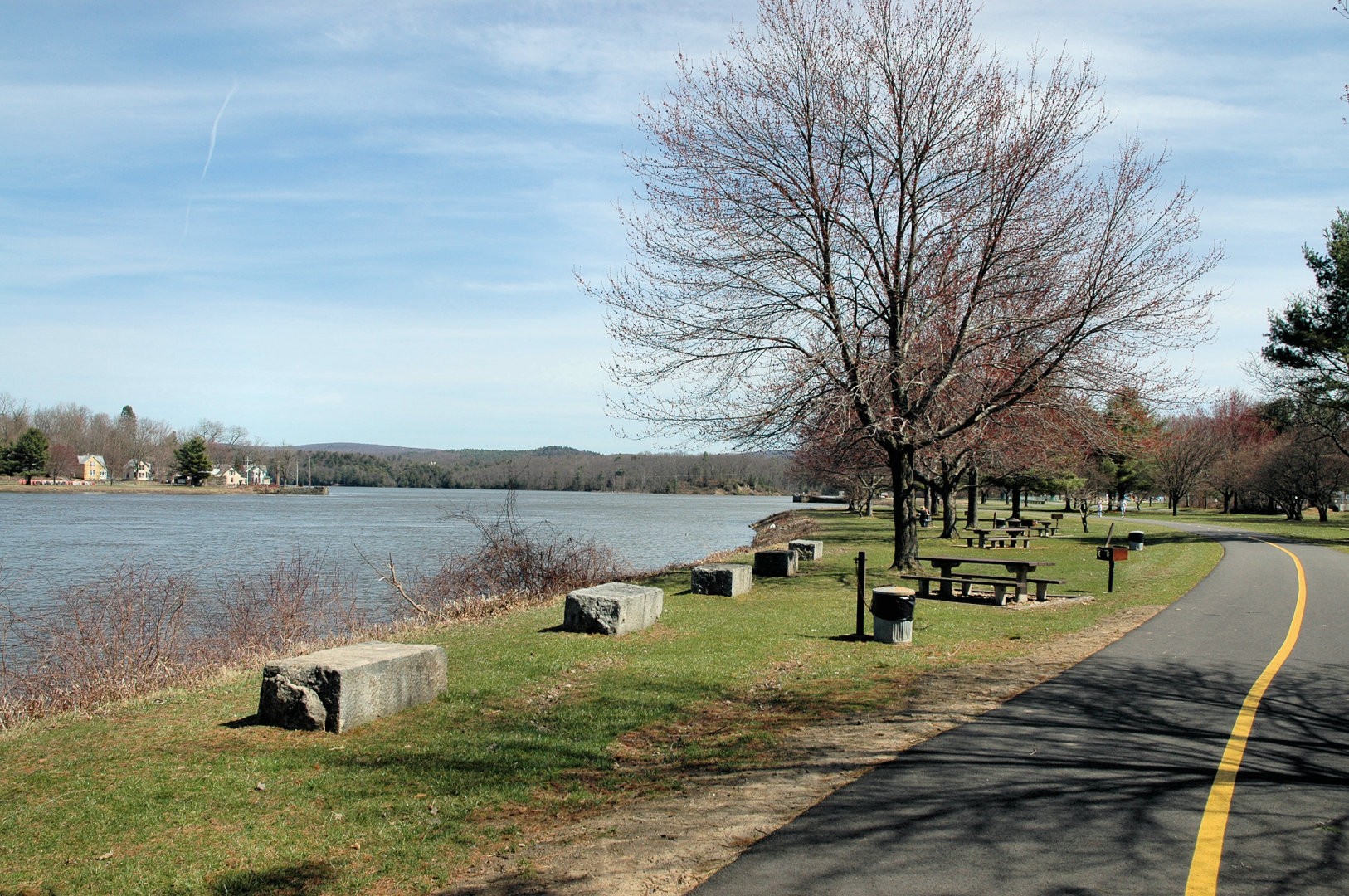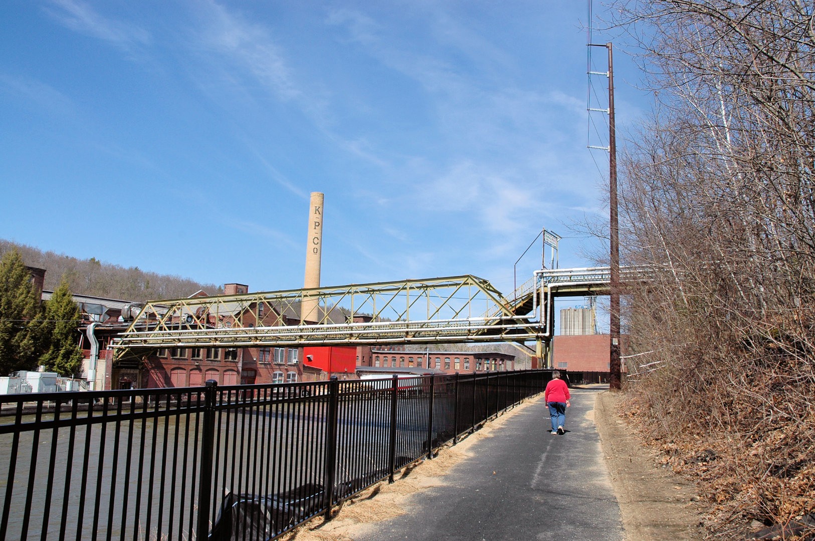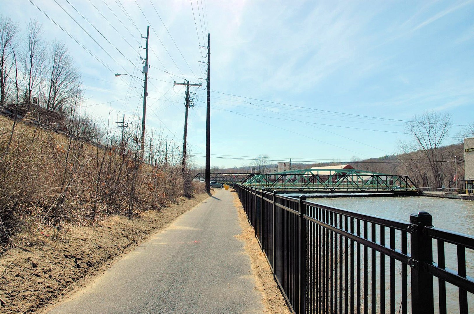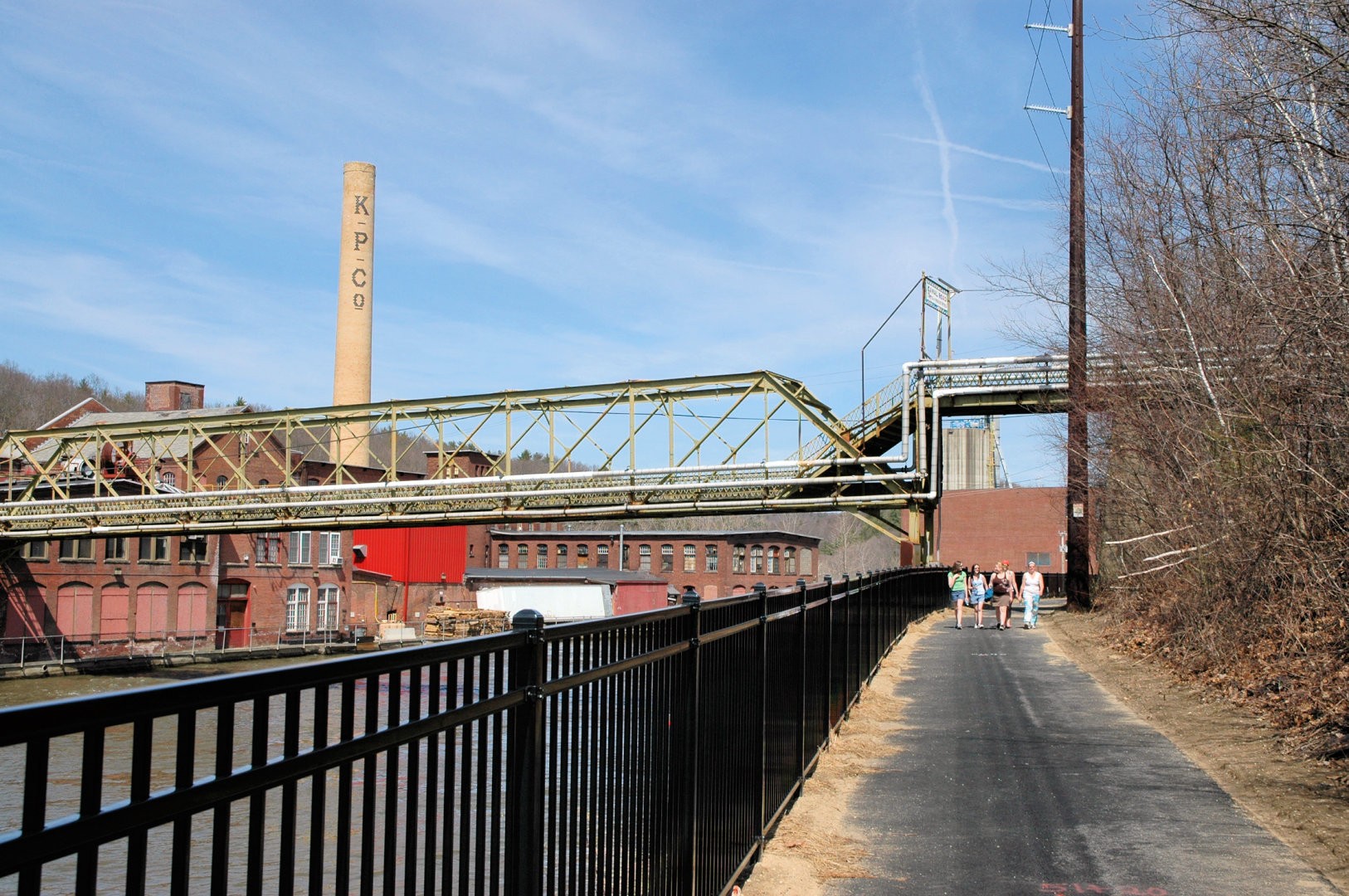 The Canalside Rail Trail (aka Bike Path) is a 3.8-mile paved trail on old railroad beds, from Unity Park in Turners Falls, Massachusetts, south to the East Deerfield RR yard. Motor vehicles are prohibited. The Rail Trail will--in the future--connect with the trail/bike path at Amherst, MA. Visionaries see the Rail Trail eventually heading to Northfield, MA, and points north from there.