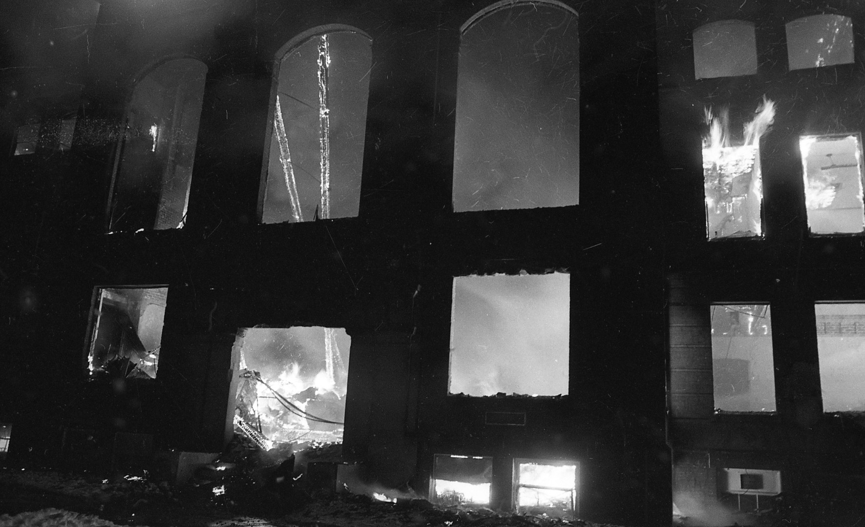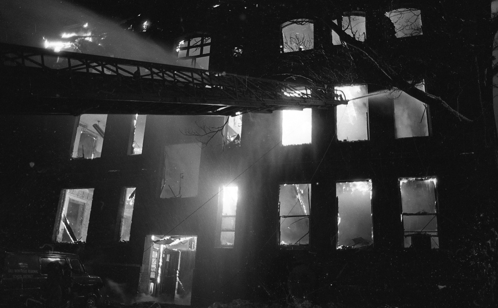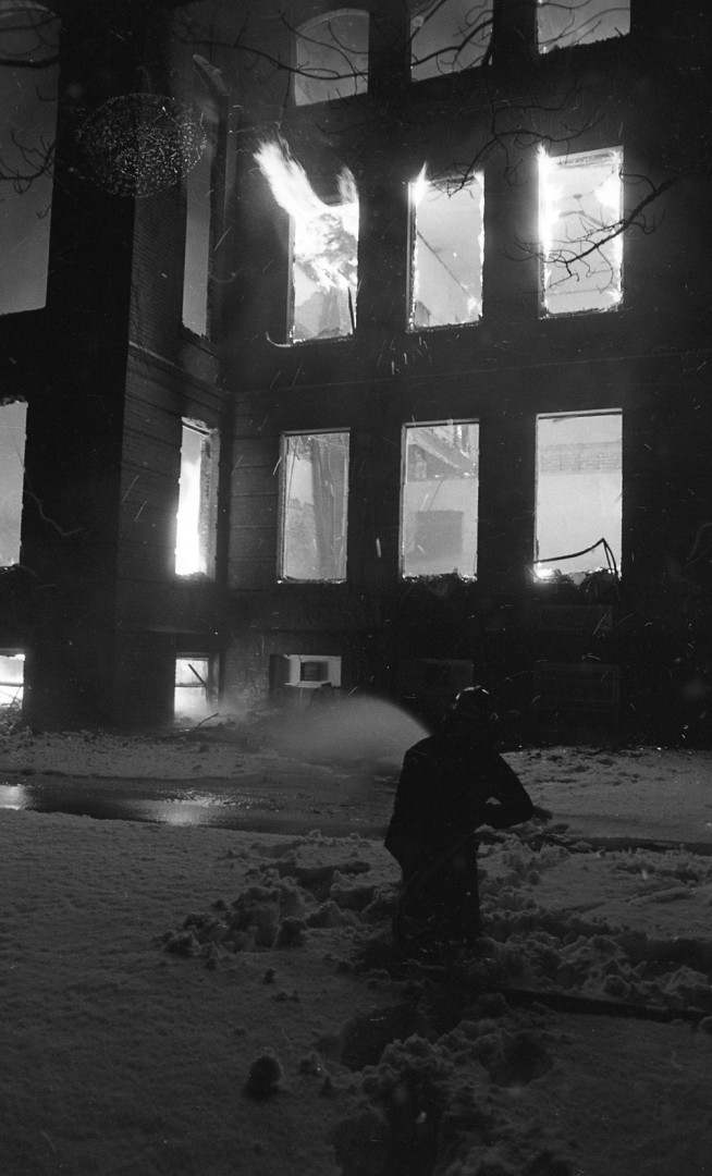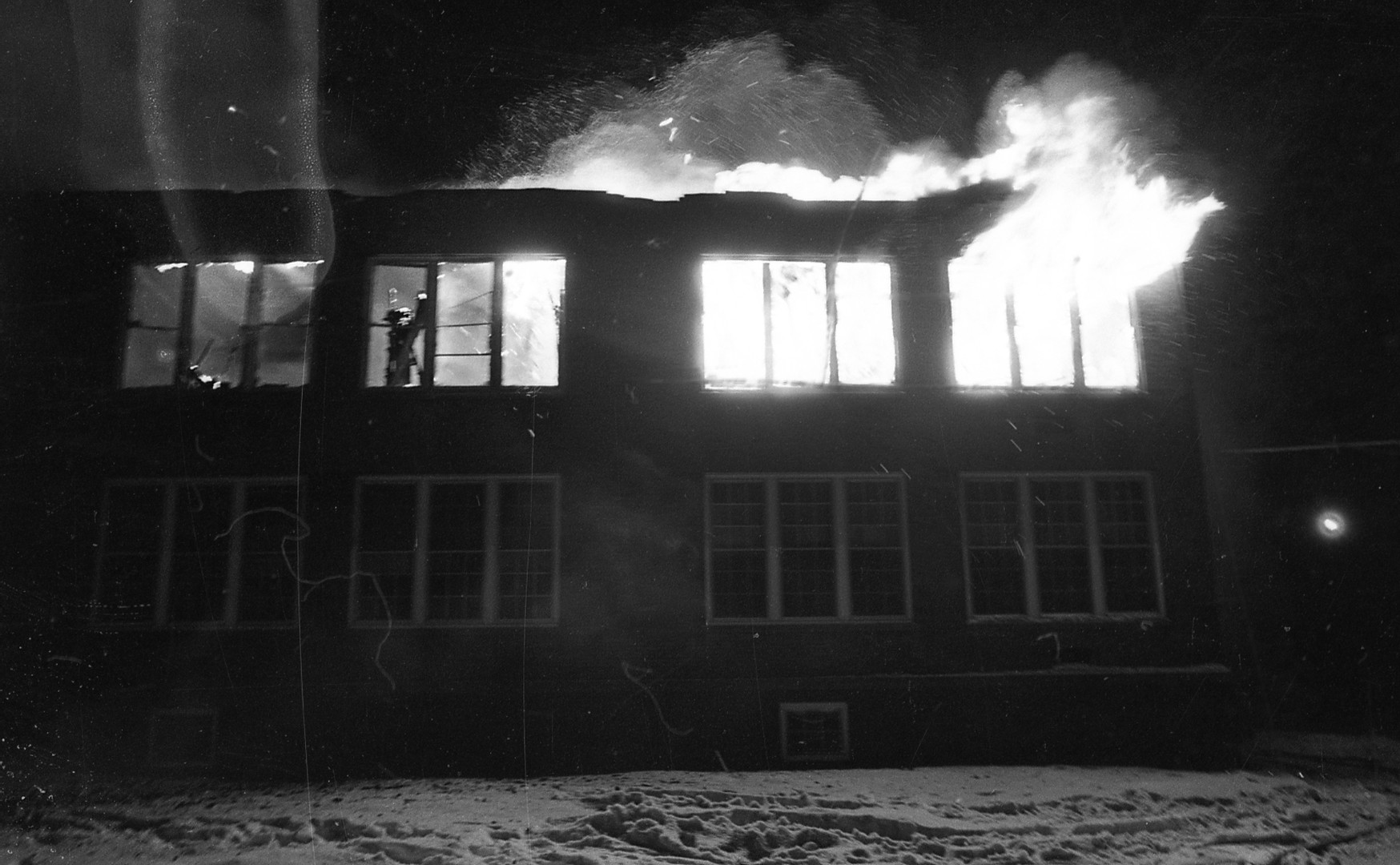 The Sheffield Middle School in Turners Falls, Massachusetts burns on a below-zero January morning in 1987. A gallery of 35 photos show the fire progression and a portion of the clean-up effort. PART 1 of 2.