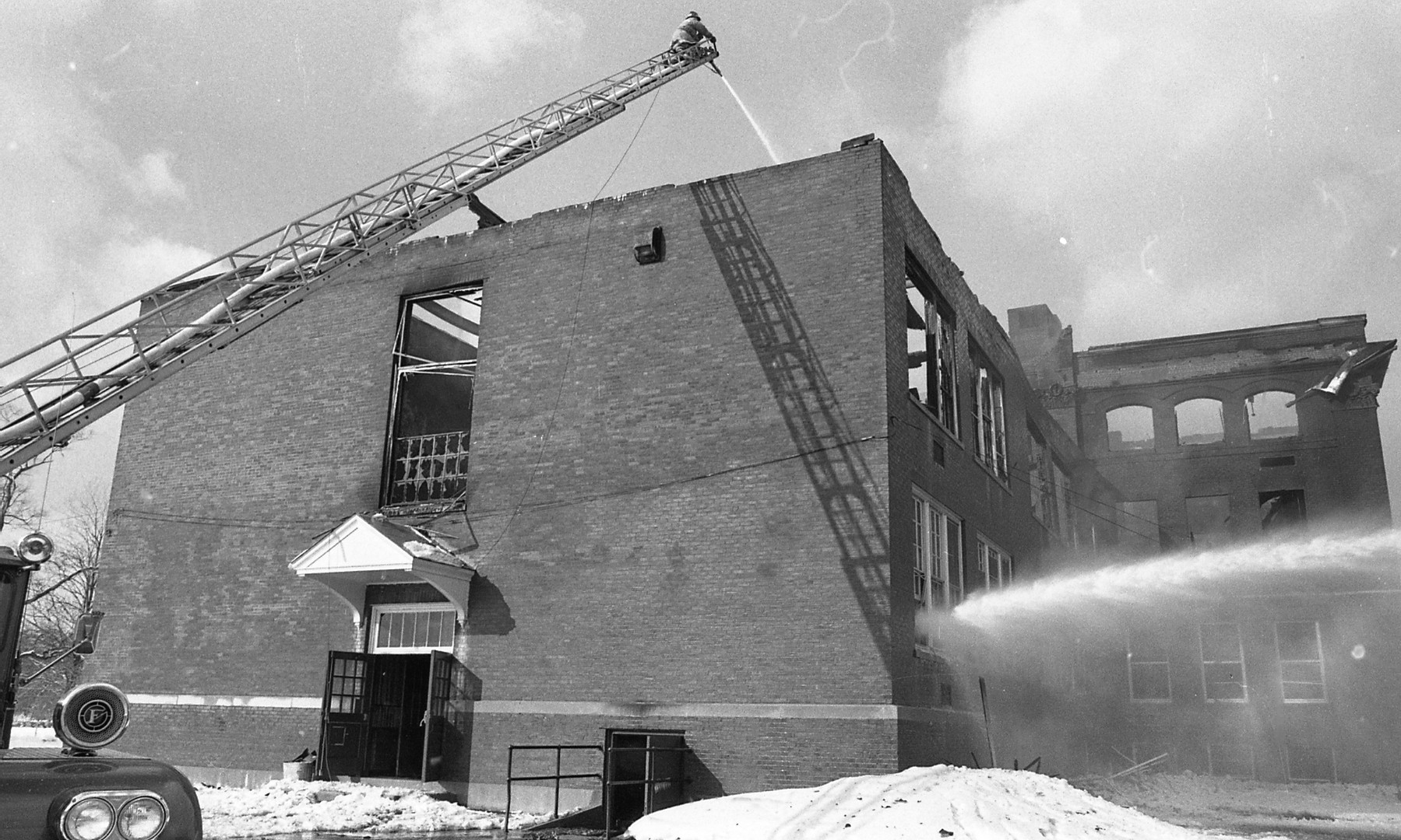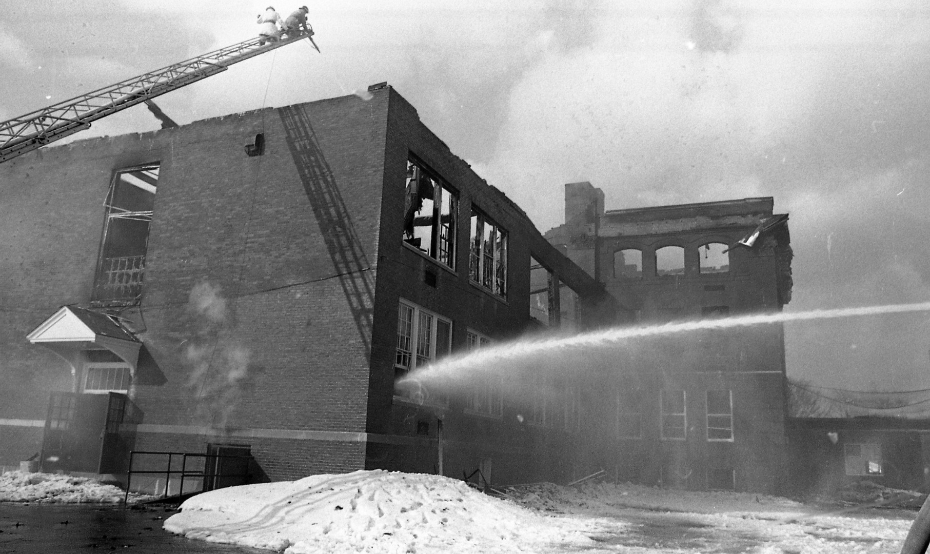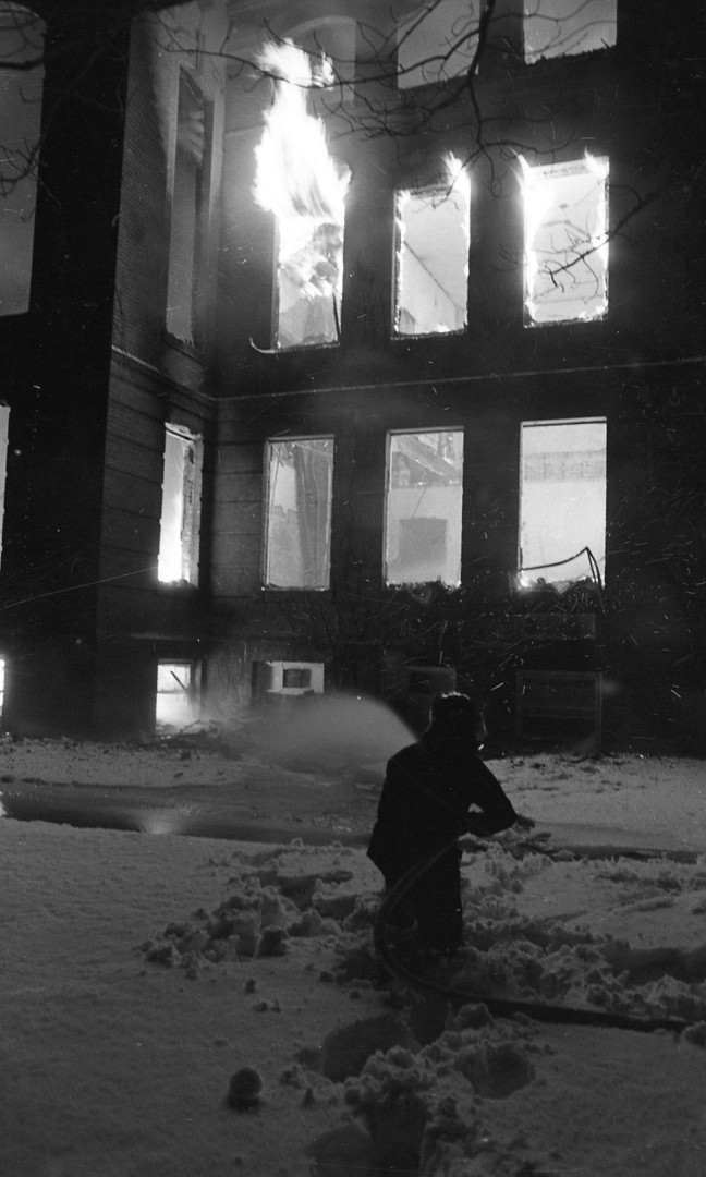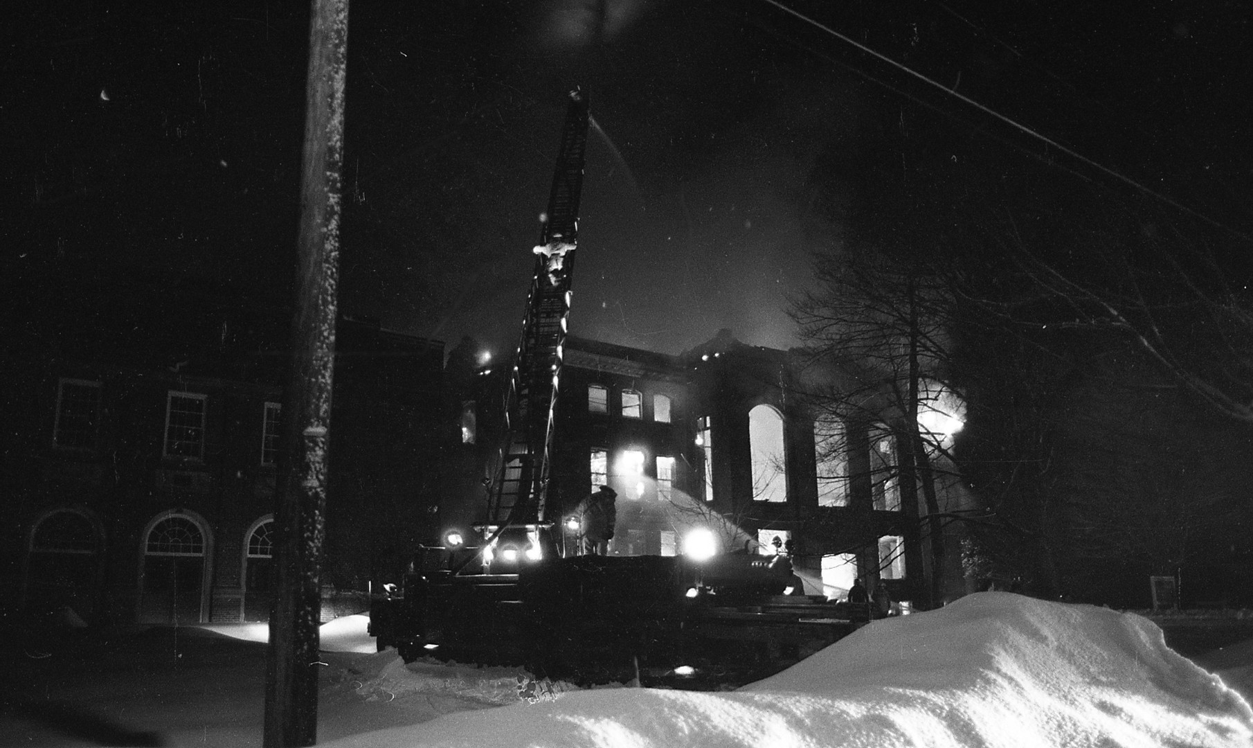 The Sheffield Middle School in Turners Falls, Massachusetts burns on a below-zero January morning in 1987. A gallery of 35 photos show the fire progression and a portion of the clean-up effort. PART 1 of 2.