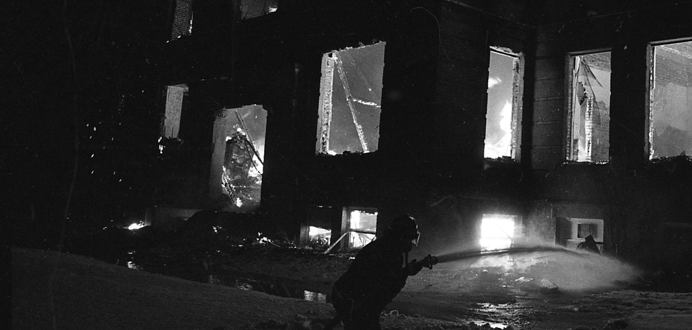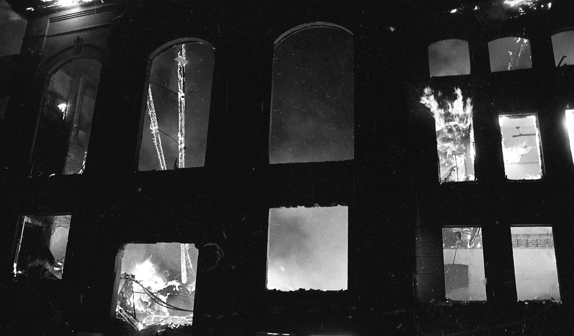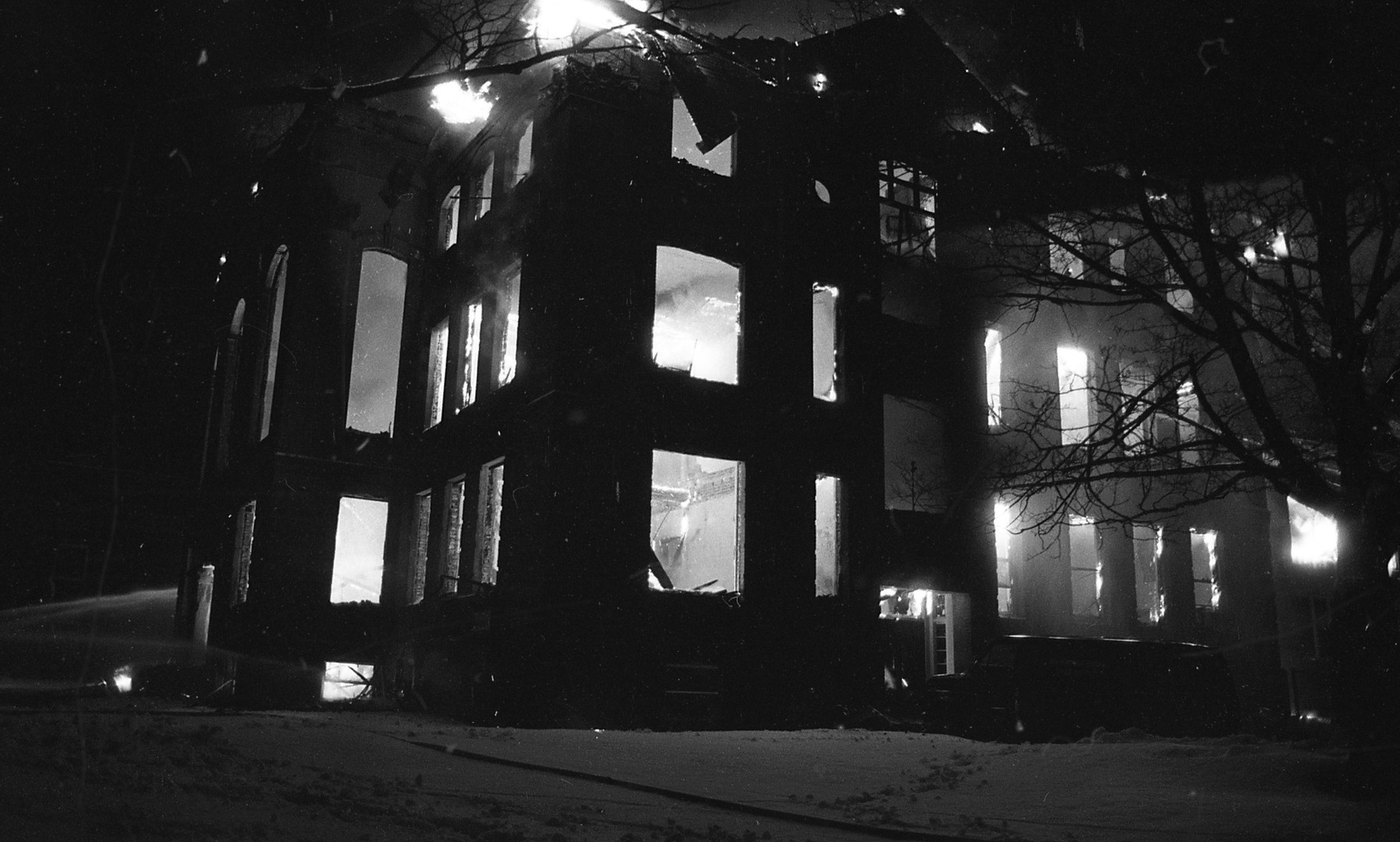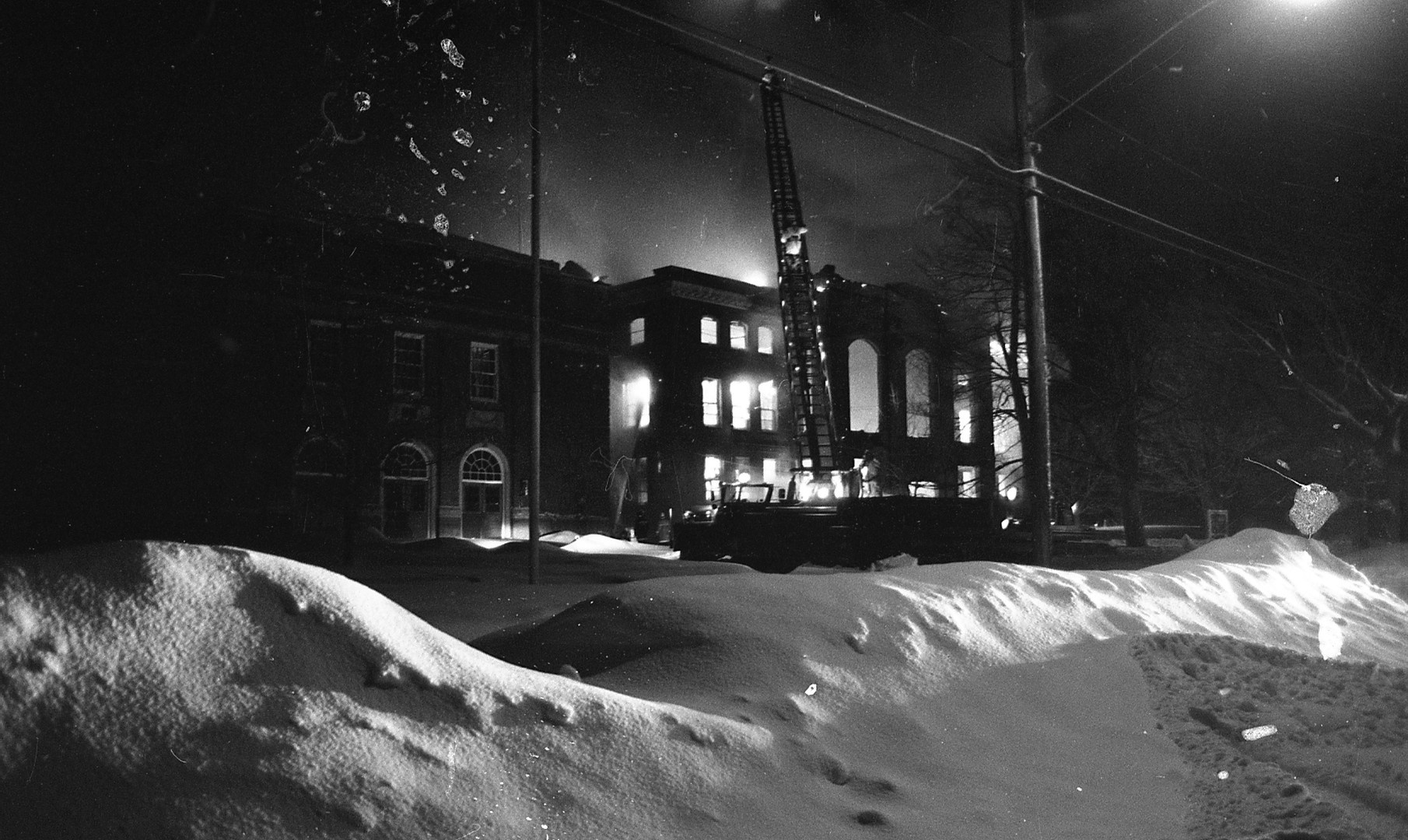 The Sheffield Middle School in Turners Falls, Massachusetts burns on a below-zero January morning in 1987. A gallery of 35 photos show the fire progression and a portion of the clean-up effort. PART 1 of 2.