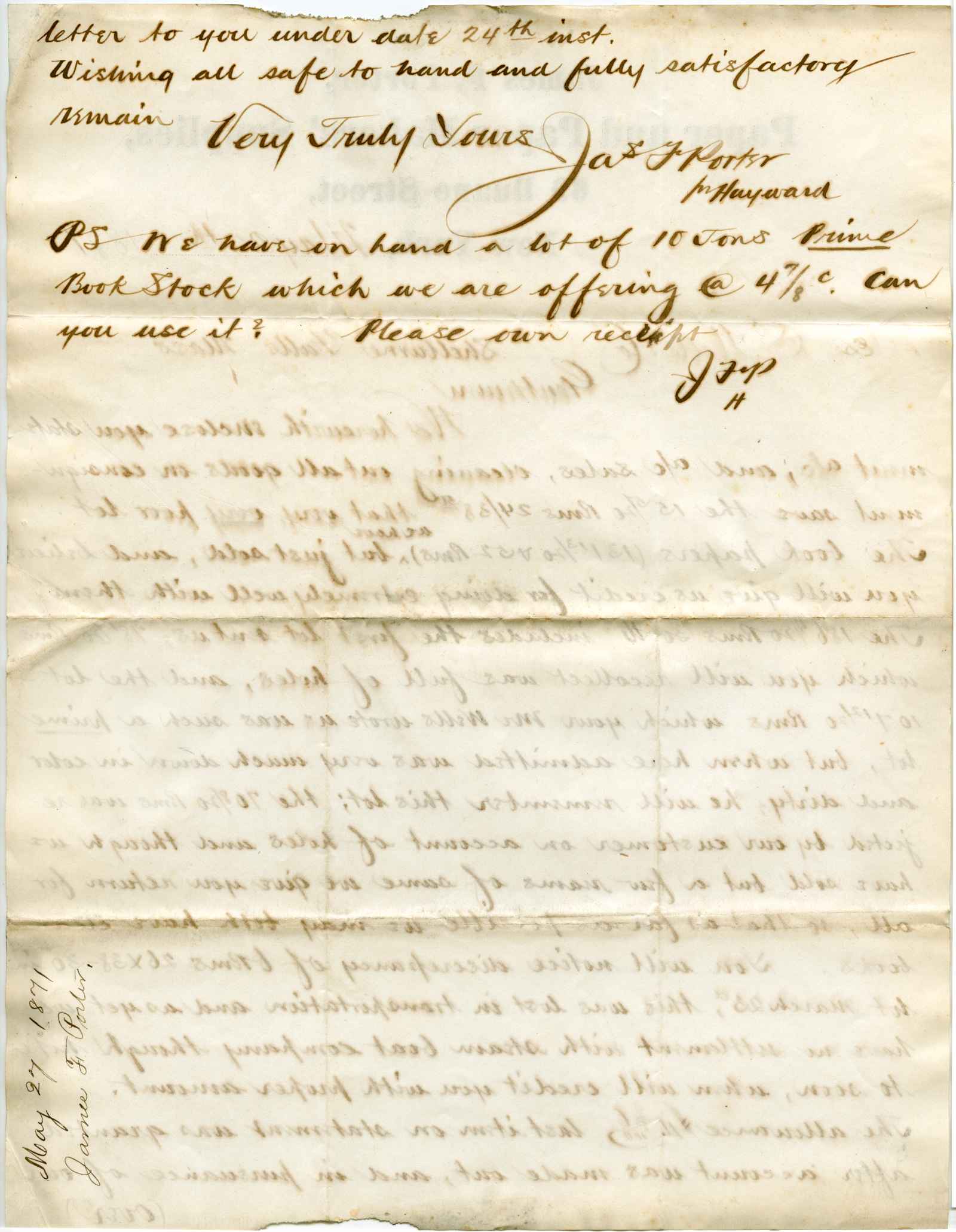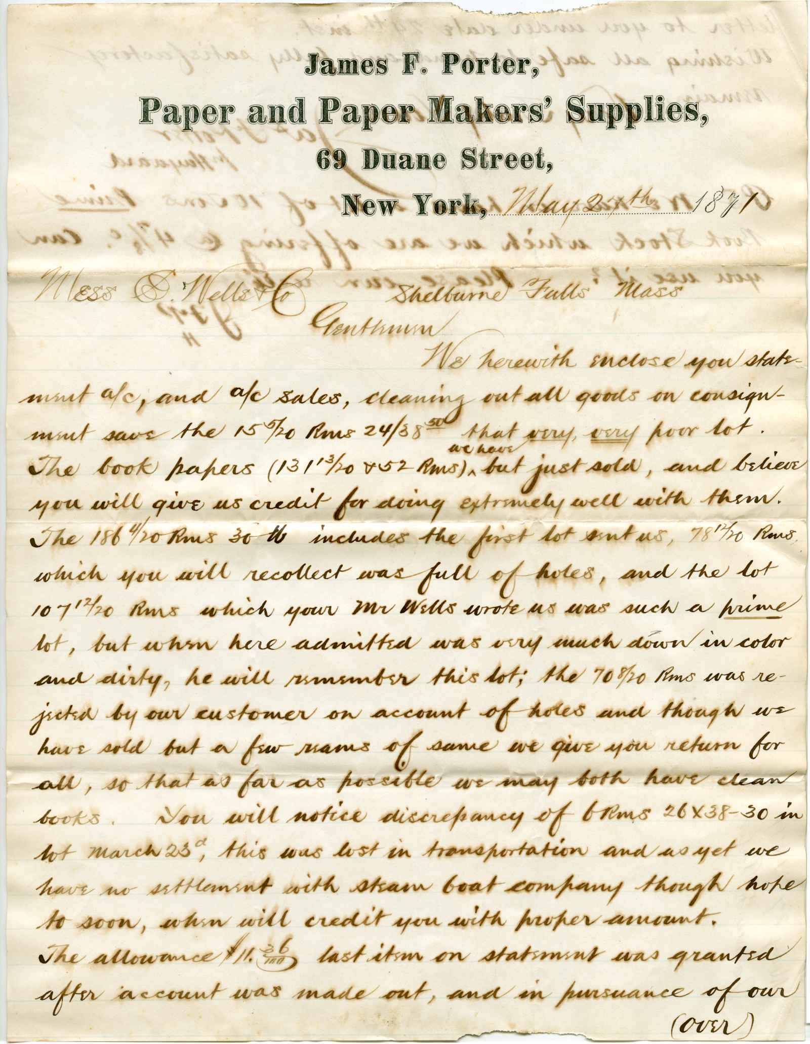 letter; Porter, James & F. - Paper and Paper Maker's Supplies - N.Y.