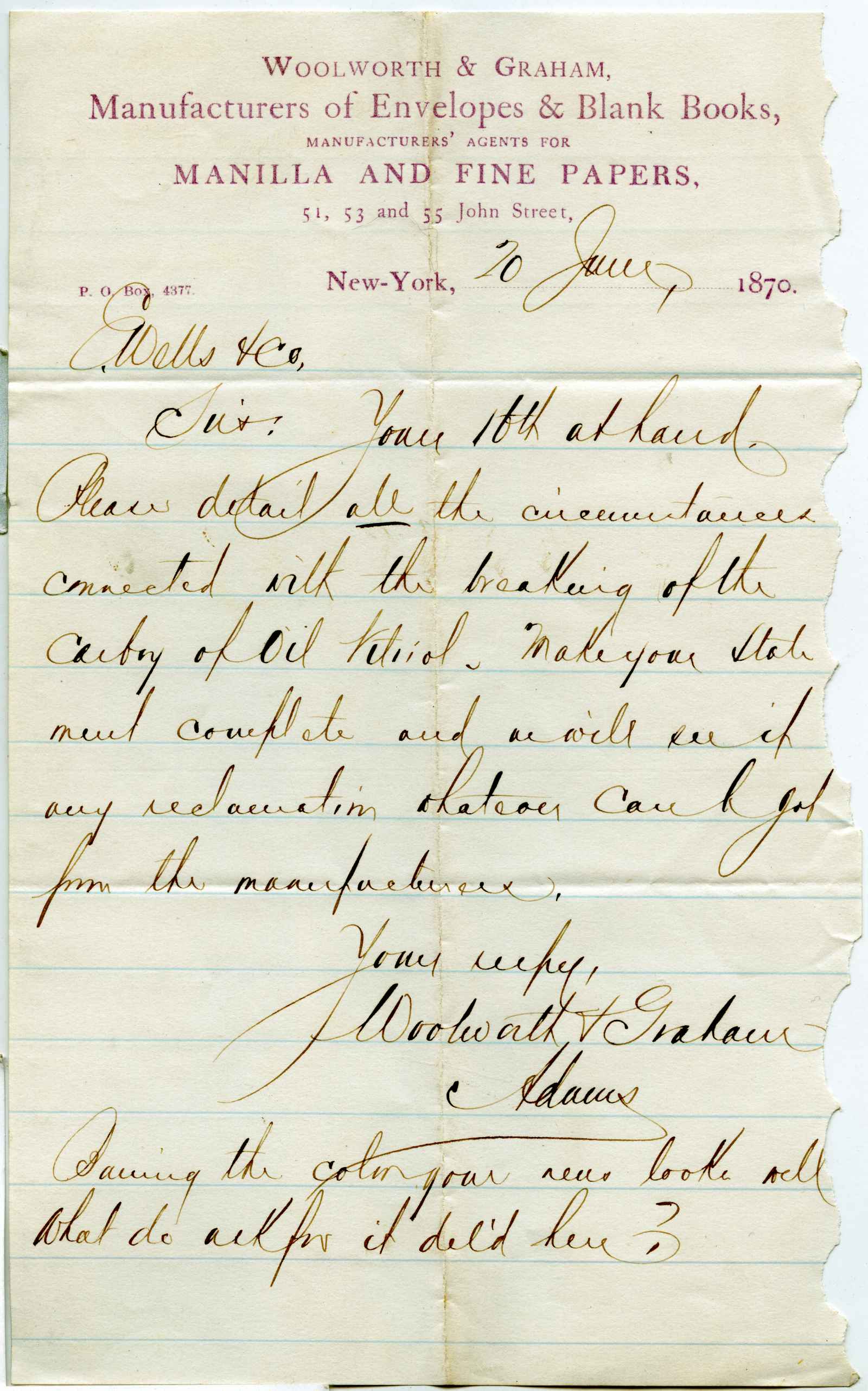 letter; Woolworth & Graham - Manufacturers of Envelopes and Blank Books - N.Y.