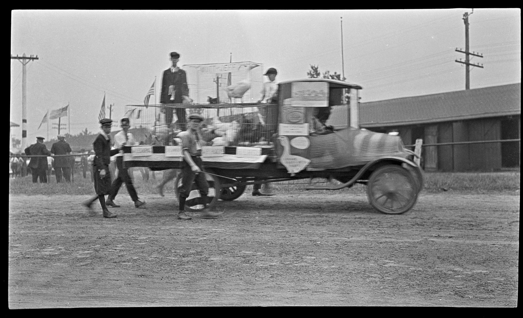 This image collection shows the goings-on relative to the Franklin County Agricultural Society's annual Fair that's held at their fairgrounds at Wisdom Way. These early 20th century photos show us a selection of participants in the pre-fair parade as well as several fairground scenes.