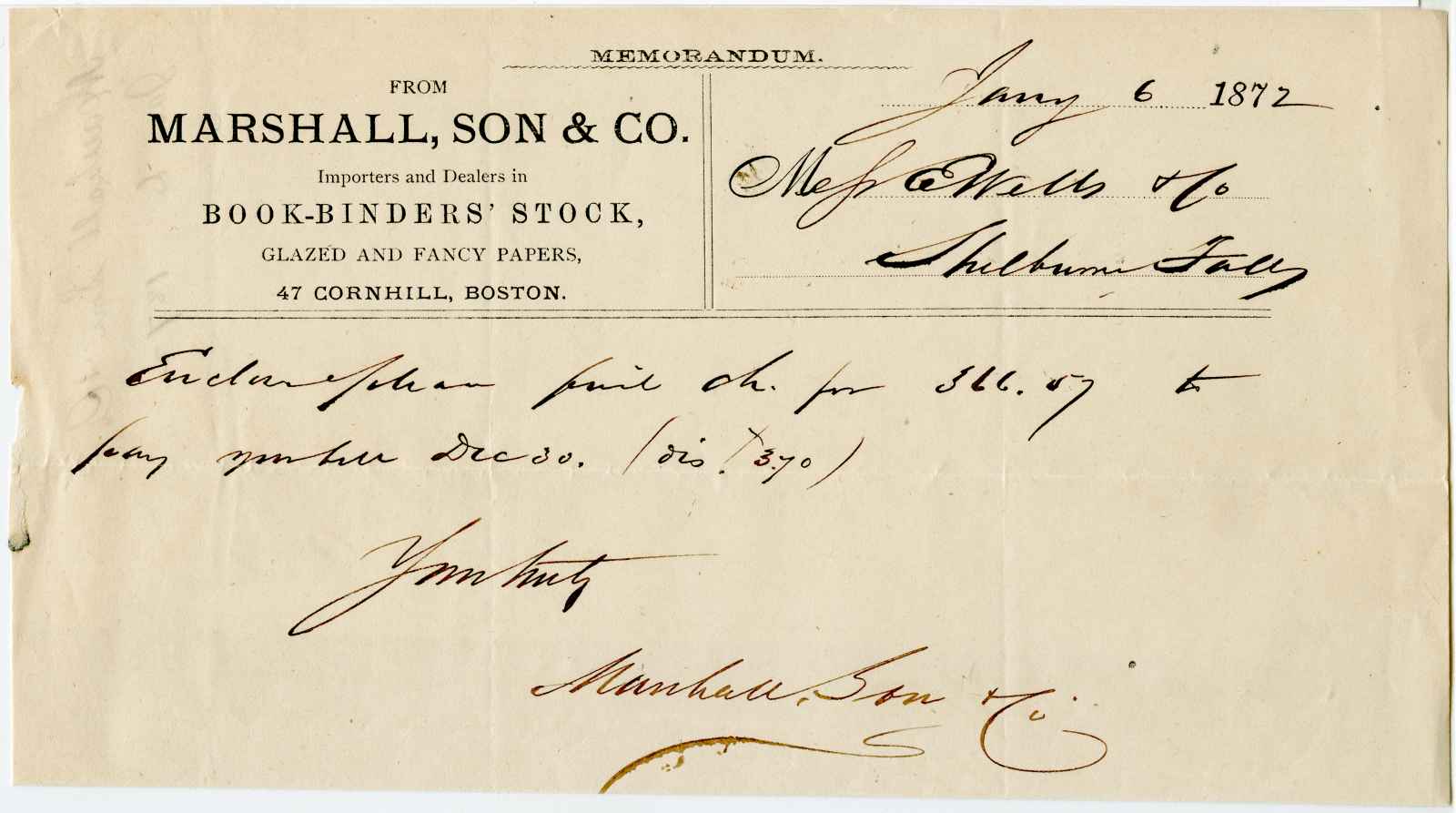 letter; Marshall, Son & Co. - Book - Binder's Stock - Boston