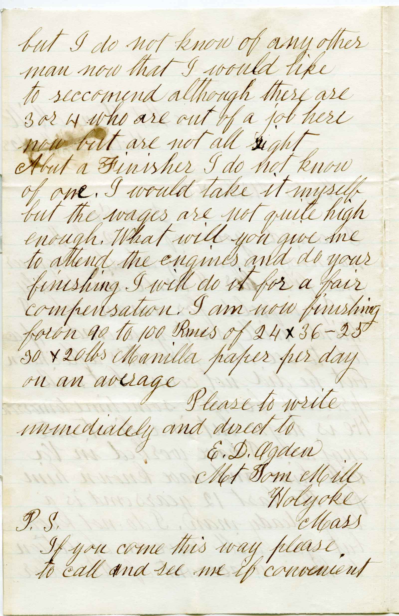 letter; Ogden, E. D. - Letter about engines - Holyoke, Ma.
