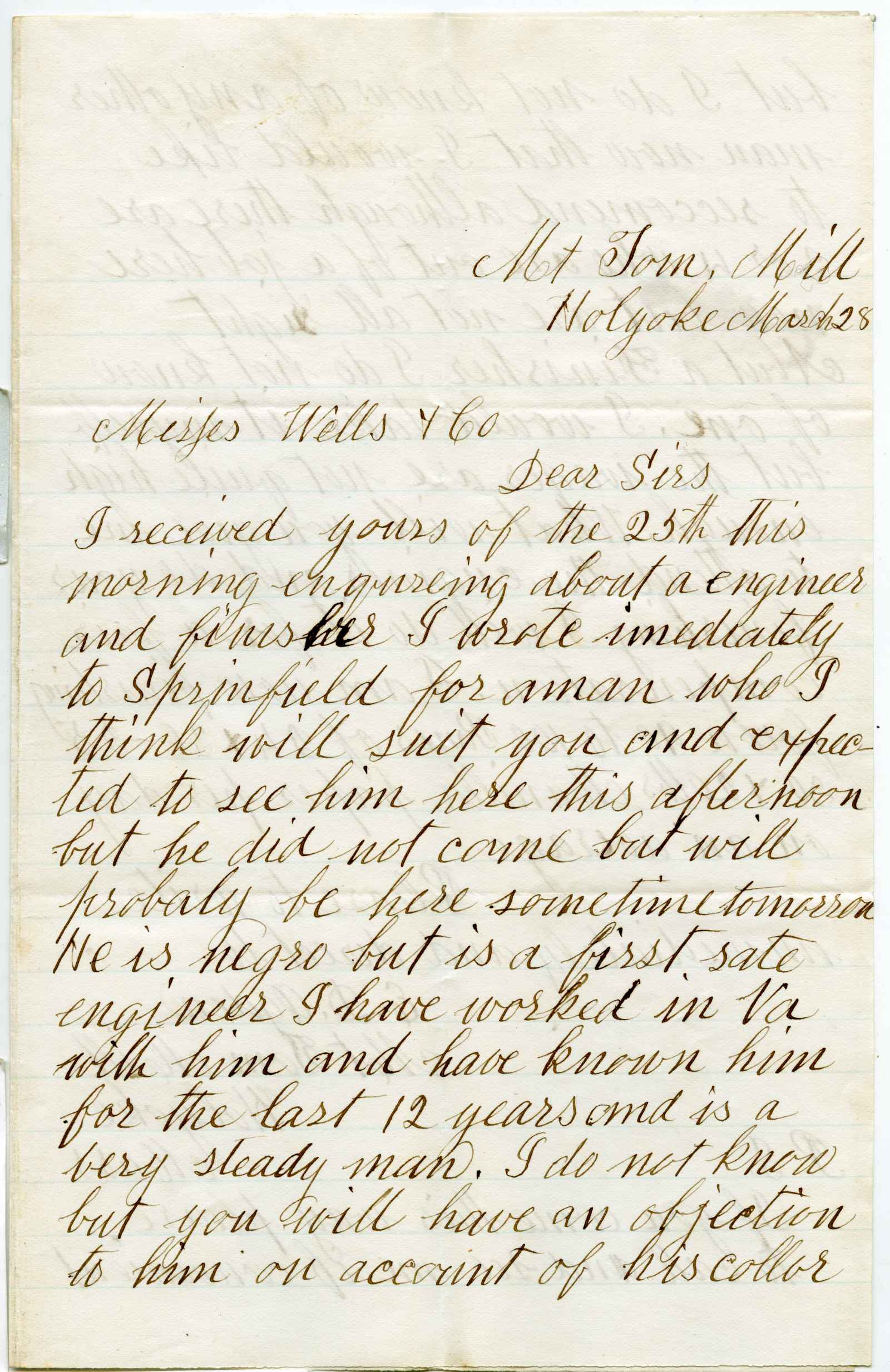 incoming correspondence to the papermaking company of Elisha Wells - circa 1870