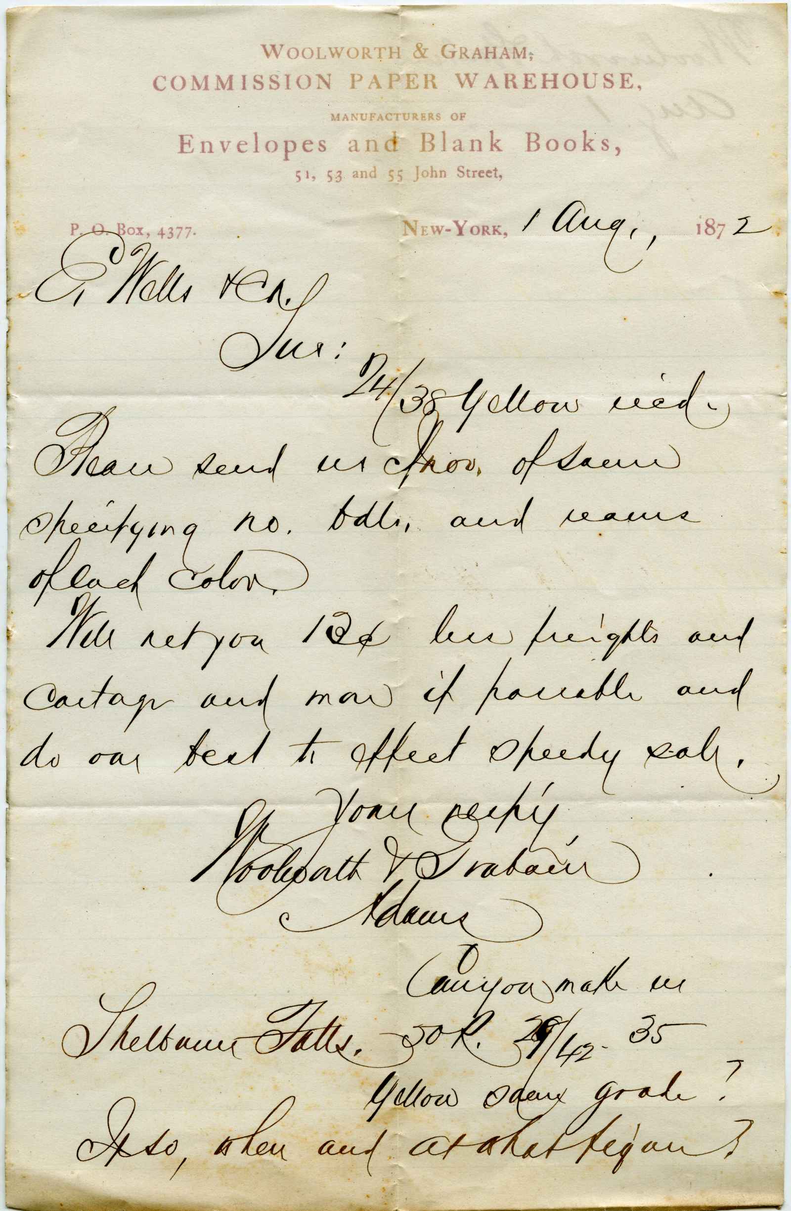 letter; Woolworth & Graham - Manufacturers of Envelopes and Blank Books - N.Y.