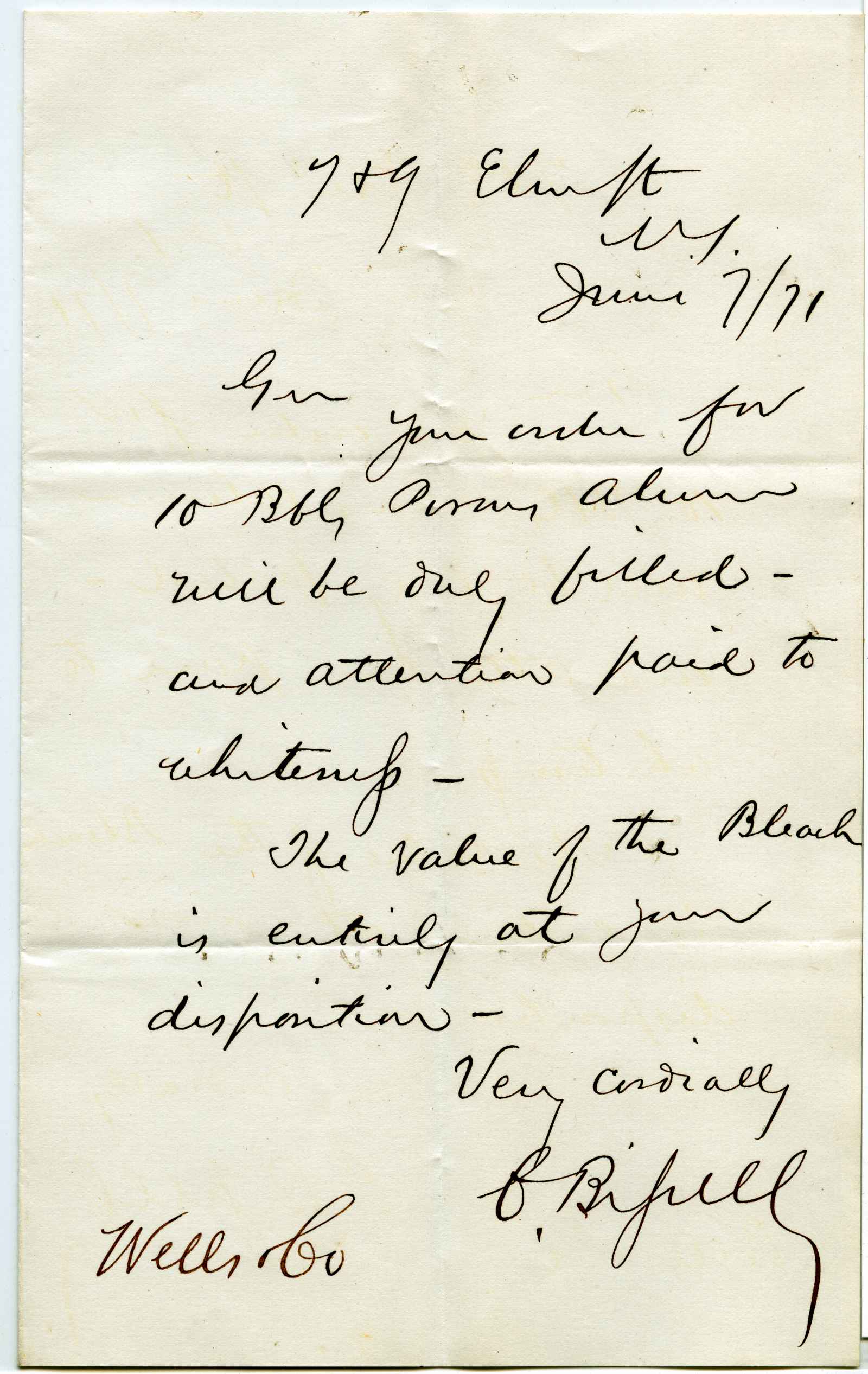 incoming correspondence to the papermaking company of Elisha Wells - circa 1870