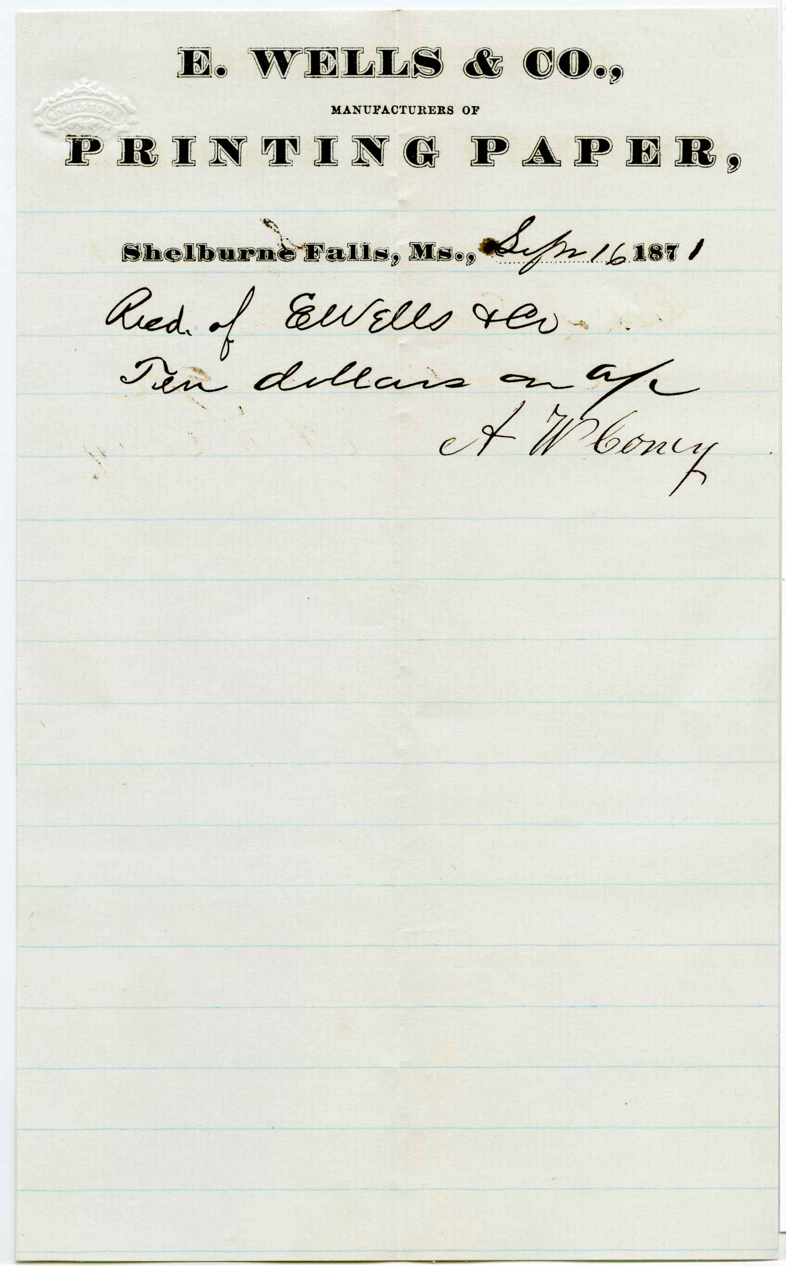 receipt; Wells, E. & Co. - payment to A.W. Coney