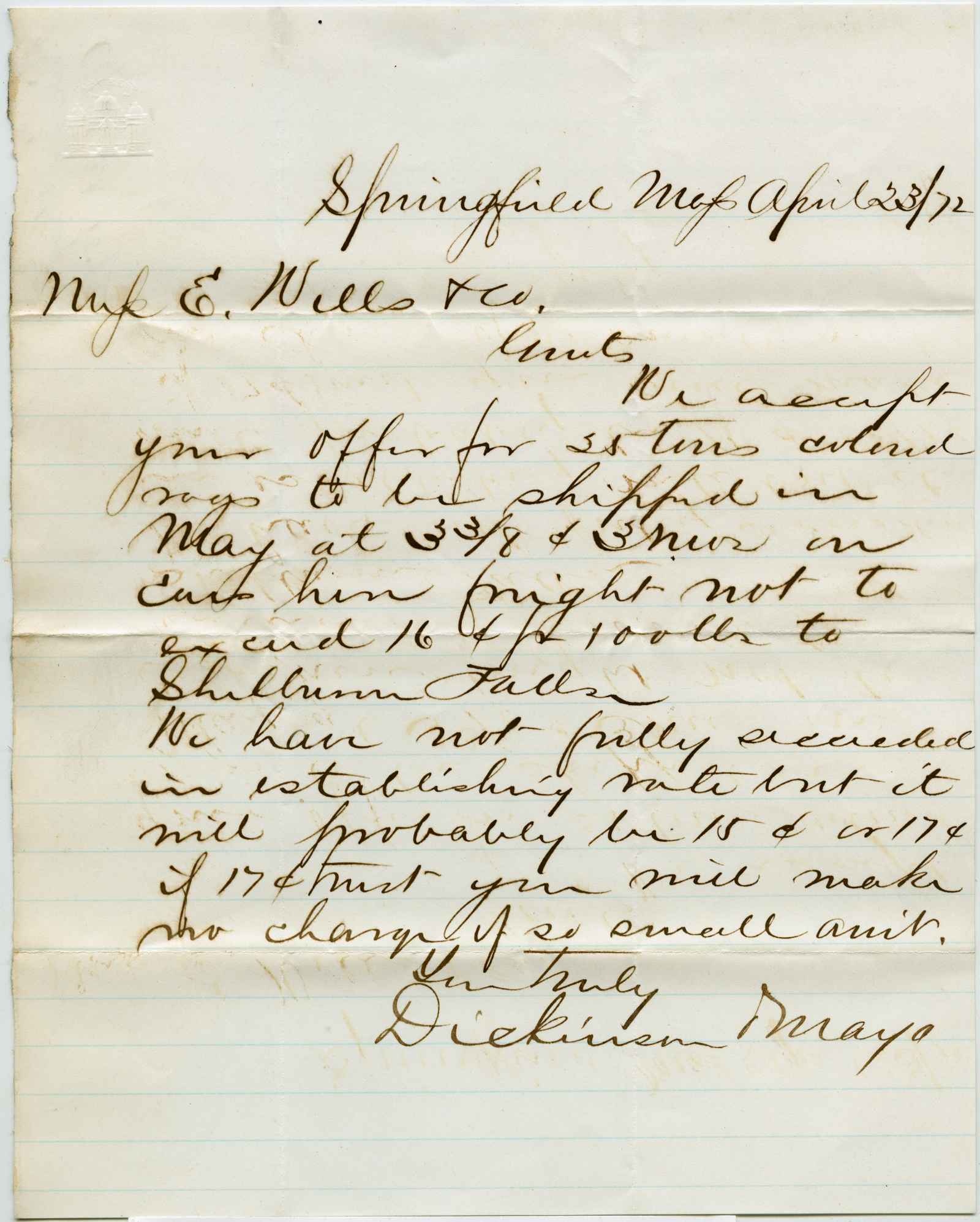 letter; Dickinson & Mayo - Paper Stock & Old Metals - Springfield, Ma.