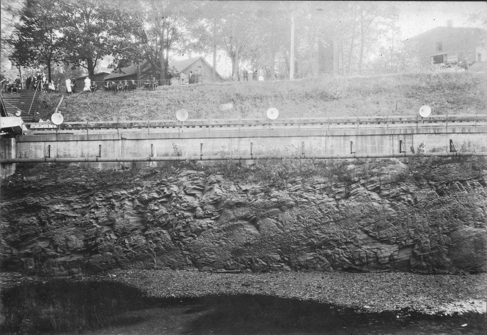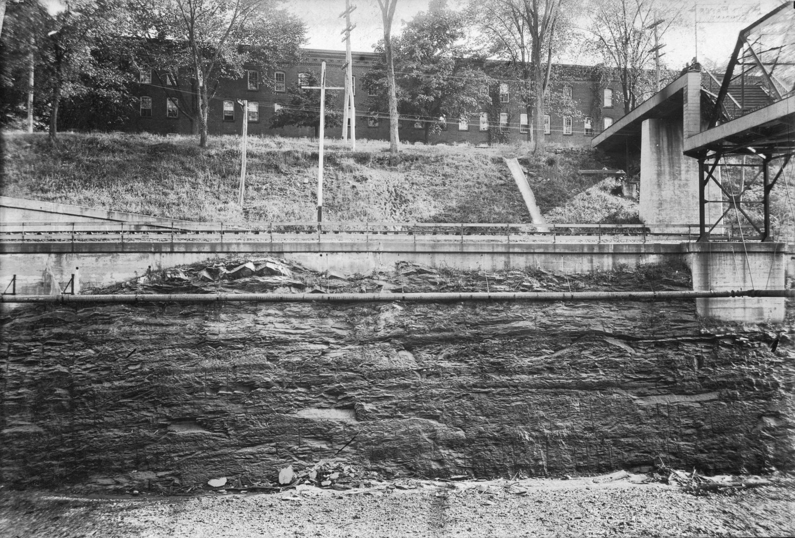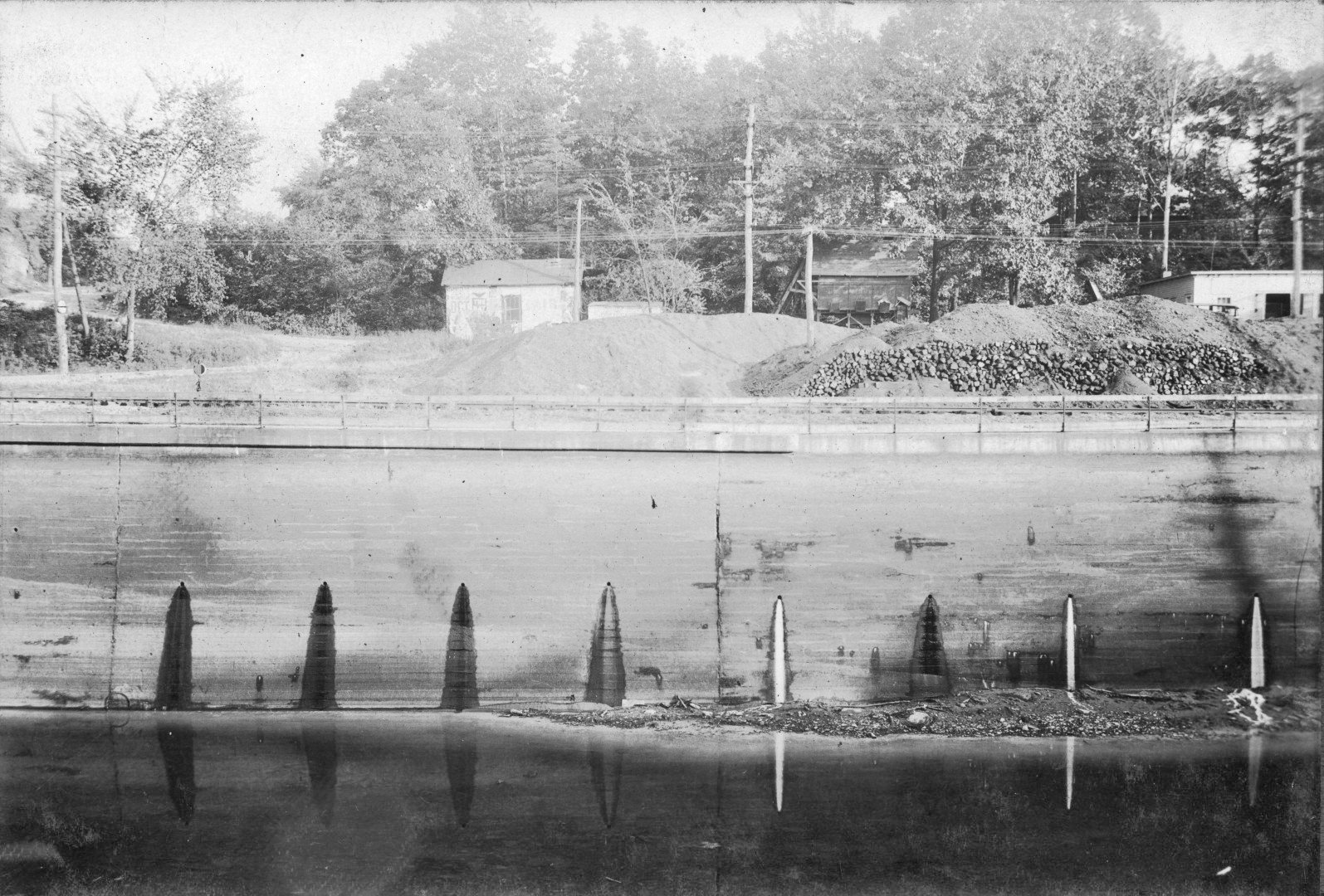 <<<The Turners Falls Power Canal extension and expansion is complete. The Turners Falls Company will document-photographically-the wall integrity of the construction process.>>>--<<<The company employs an unknown photographer for this purpose . . . it may have been an internal function.>>>--<<<The eastside wall in this collection begins at the gatehouse area and terminates at Cabot station at Montague City.>>>