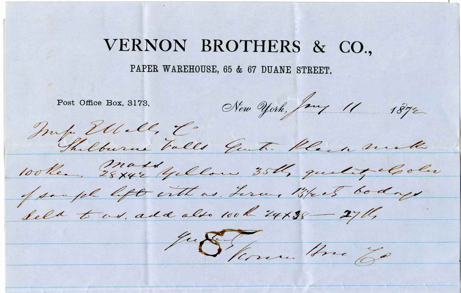 letter; Vernon Brothers & Co. - Paper Warehouse - N.Y.
