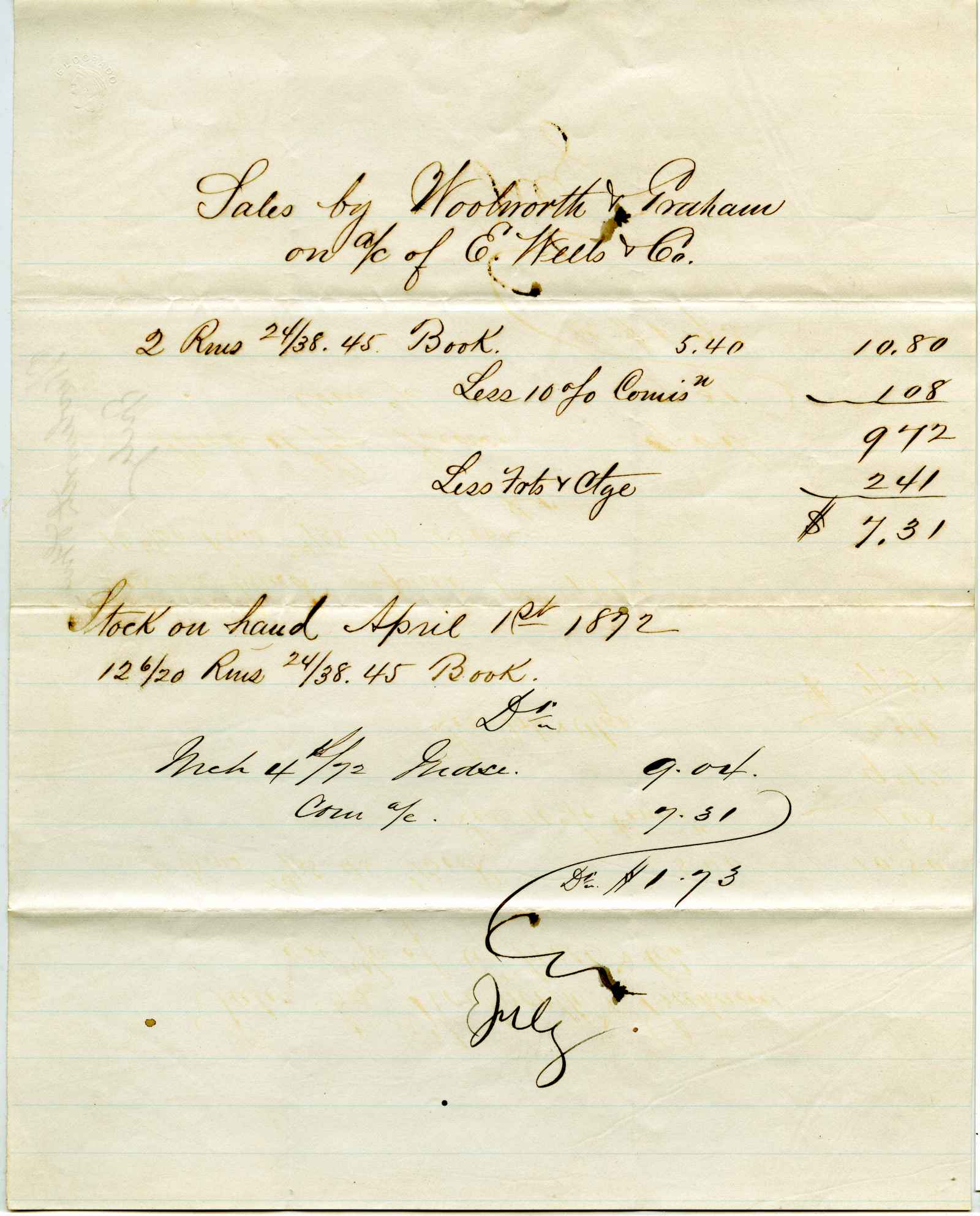 account; Woolworth & Graham - Manufacturers of Envelopes and Blank Books - N.Y.