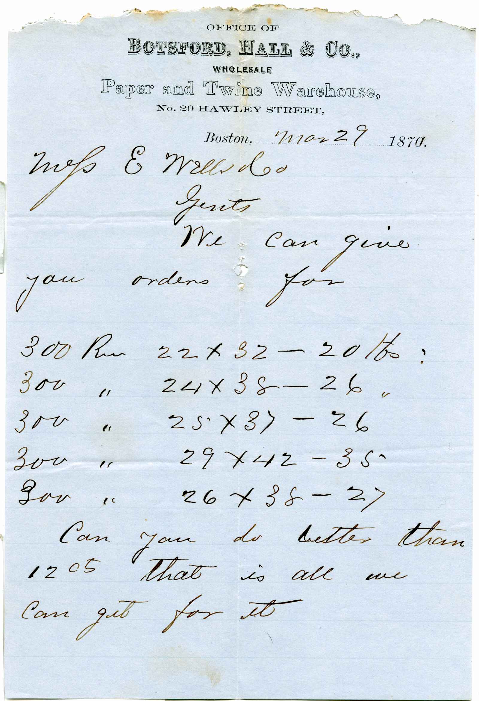 letter; Botsford, Hall & Co. - Paper & Twine - Boston