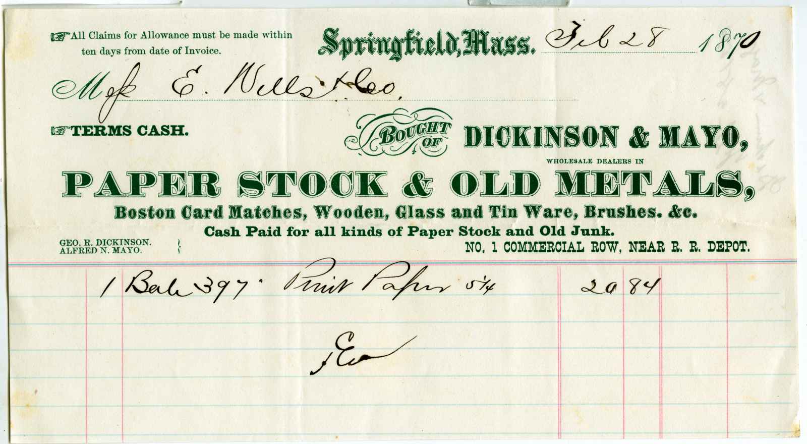 invoice; Dickinson & Mayo - Paper Stock & Old Metals - Springfield, Ma.