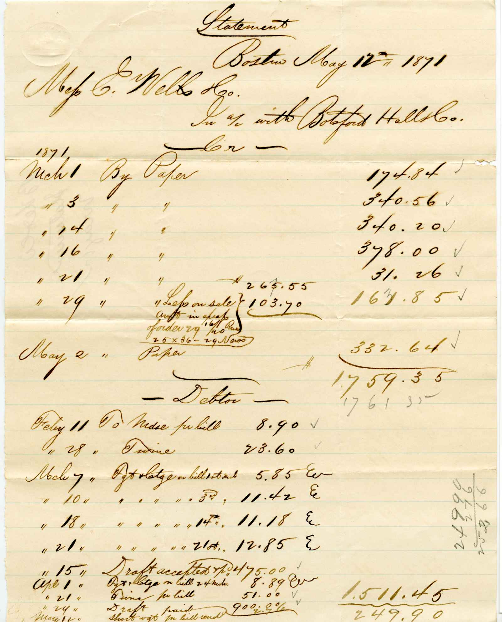 account; Botsford, Hall & Co. - Paper & Twine - Boston