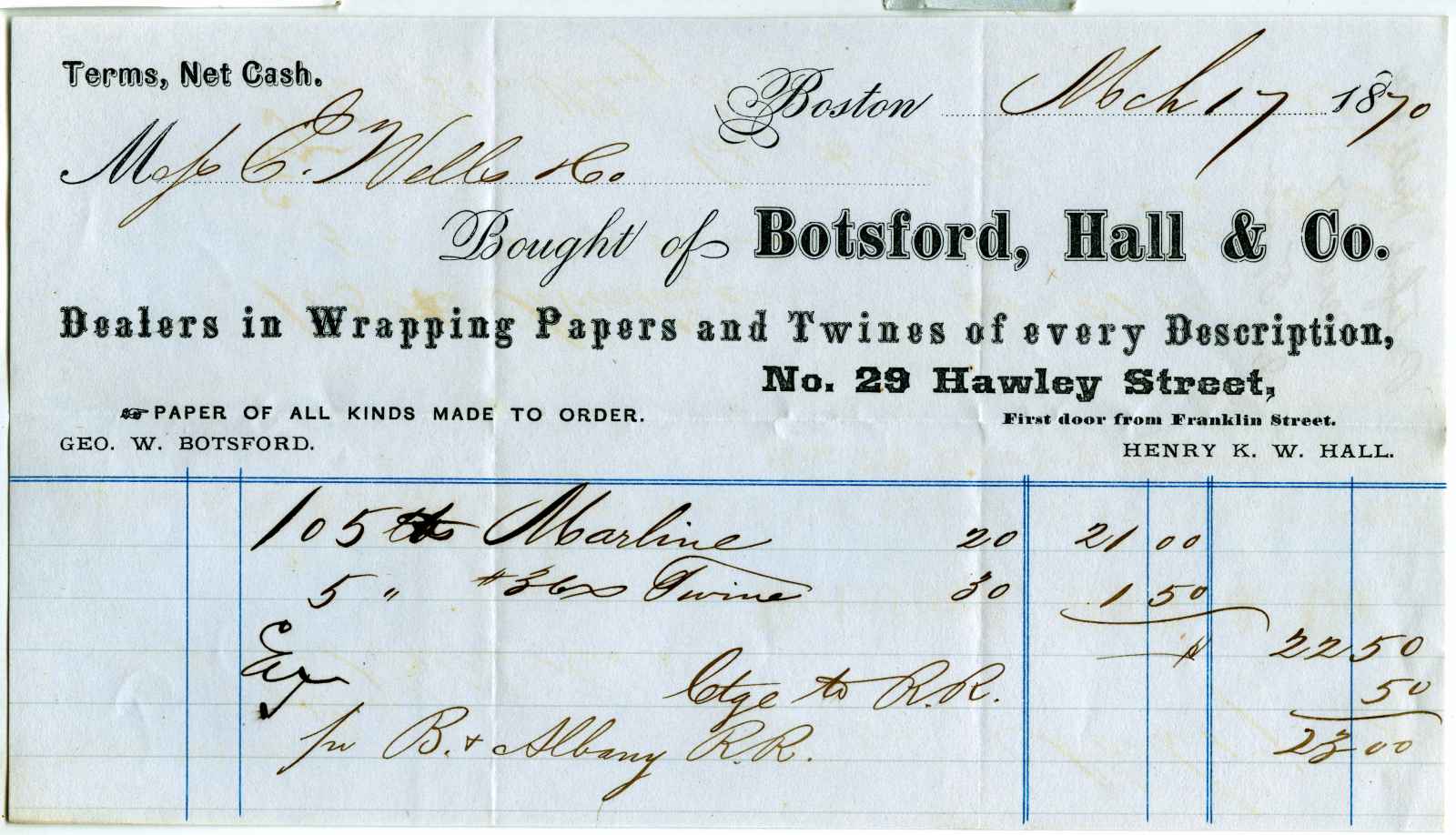 invoice; Botsford, Hall & Co. - Paper & Twine - Boston
