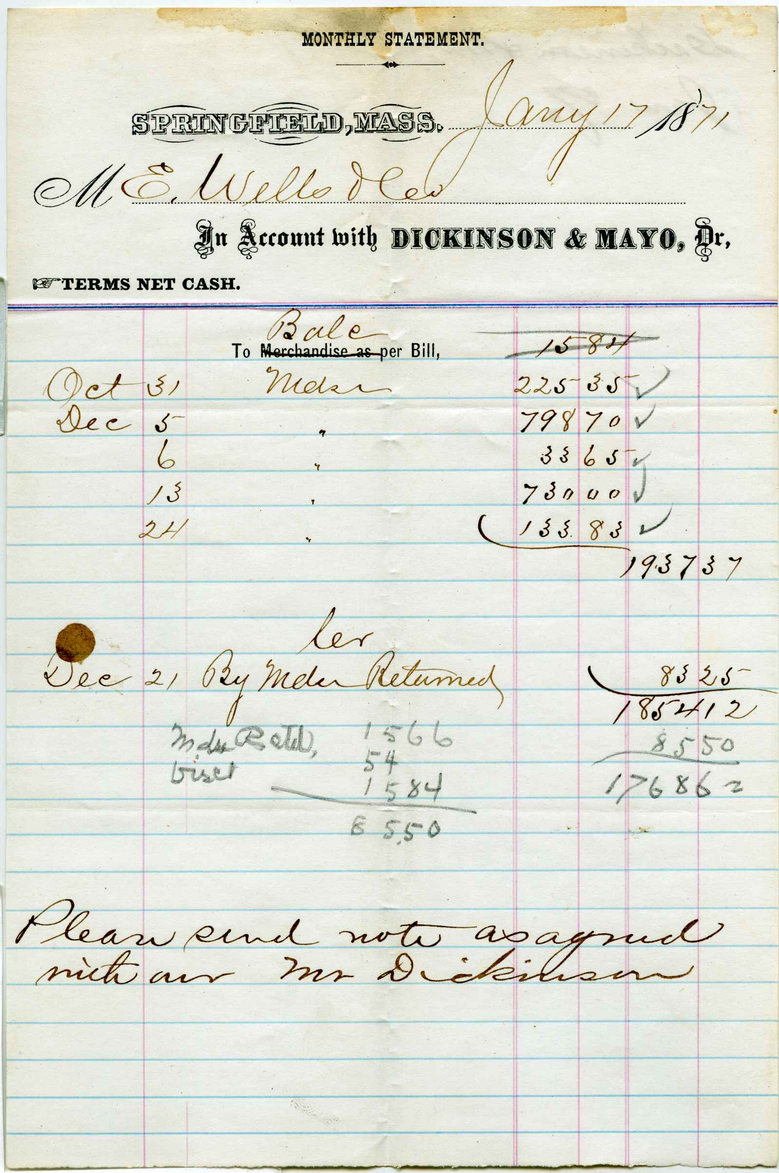 receipt; Dickinson & Mayo - Paper Stock & Old Metals - Springfield, Ma.