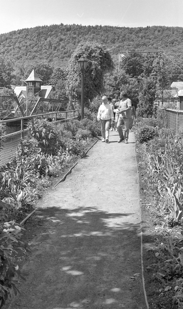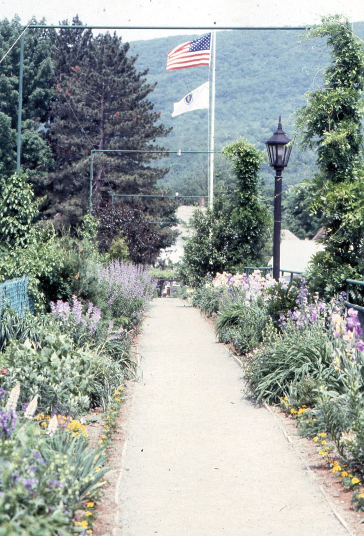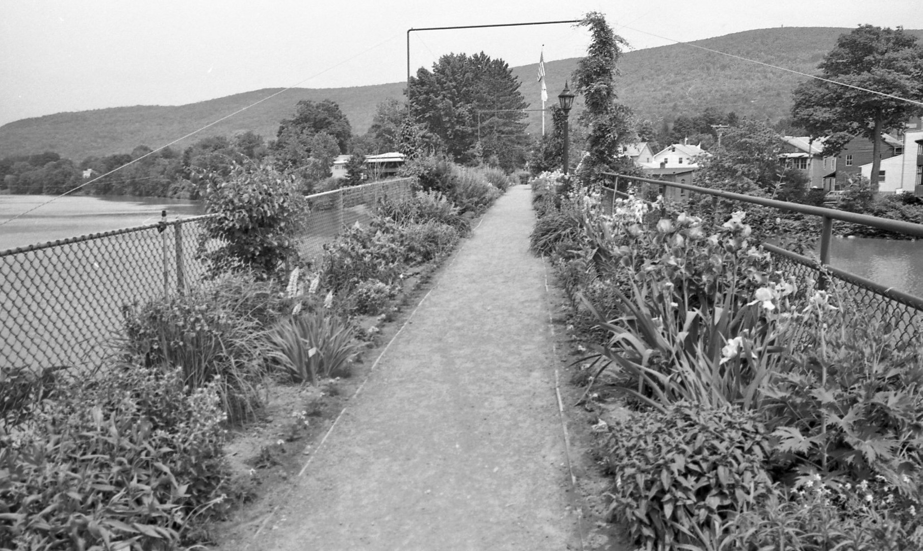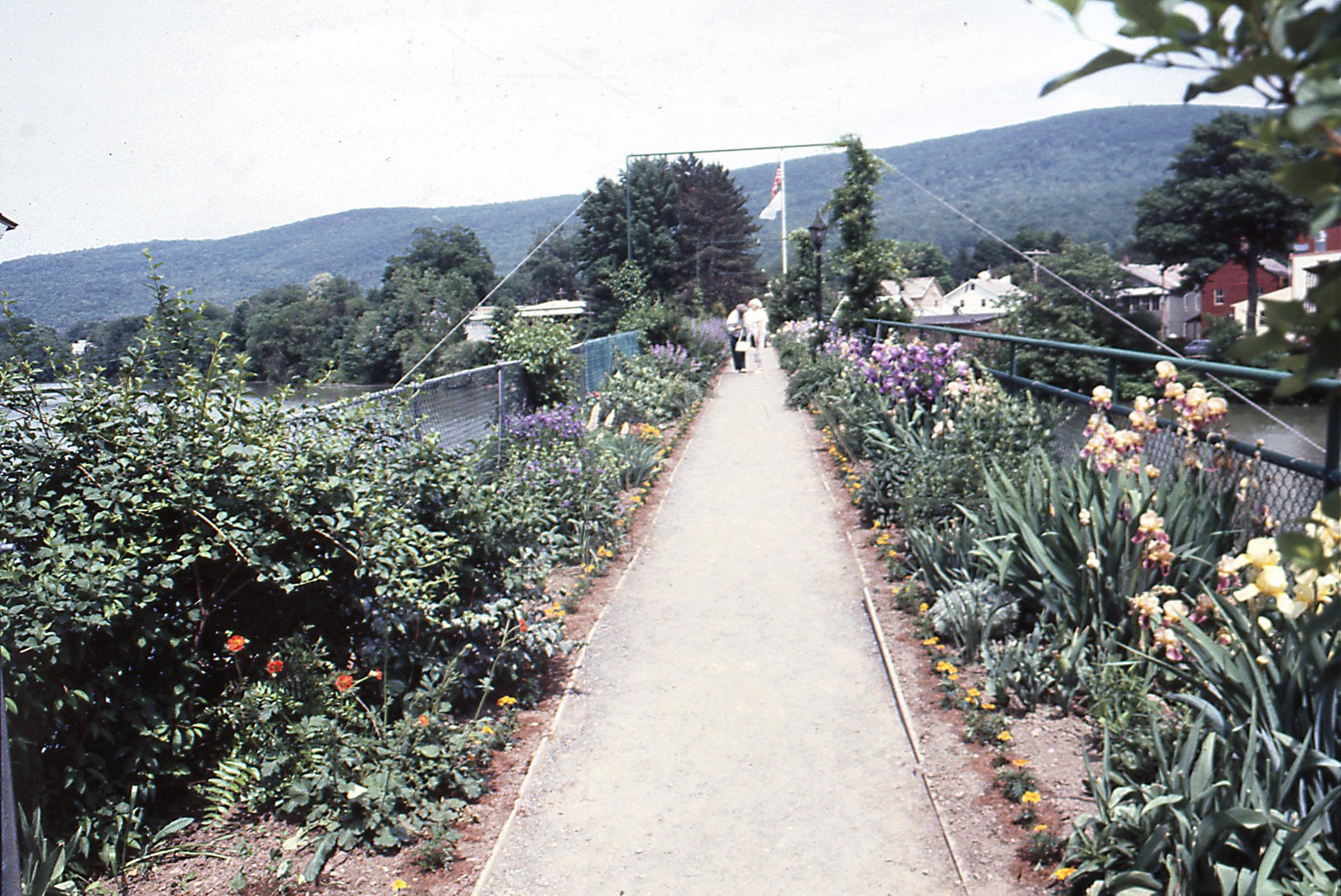 In 1929, with the bridge covered in weeds, local housewife Antoinette Burnham came up with the idea of transforming the bridge into a garden. Since it was not needed as a footbridge and could not be demolished because it carried a water main between the two towns, the community agreed to her idea. The Shelburne Woman's Club sponsored the project in 1928. In 1929, eighty loads of loam and several loads of fertilizer were brought to the bridge. Several women's clubs around town raised $1,000 in 1929.