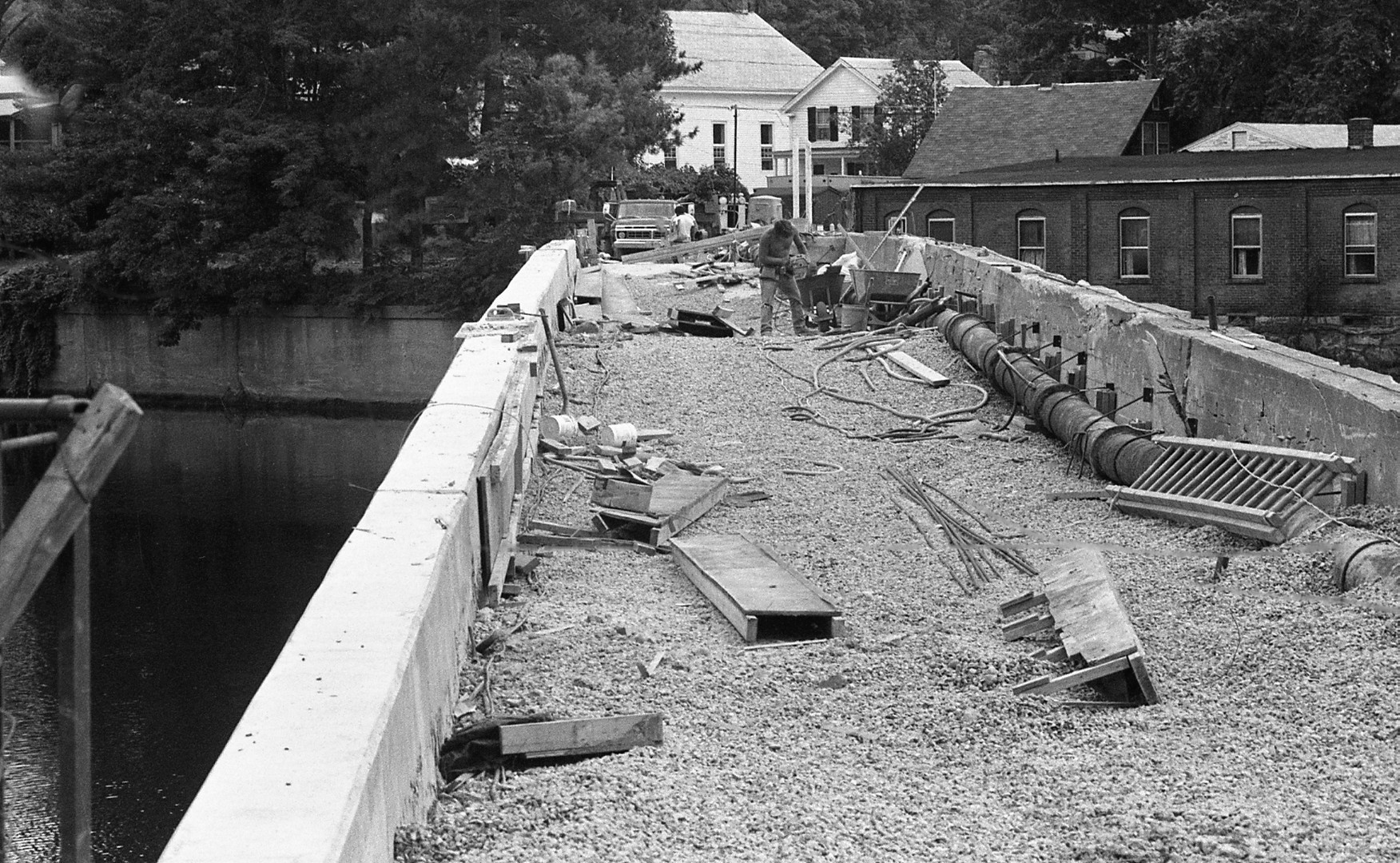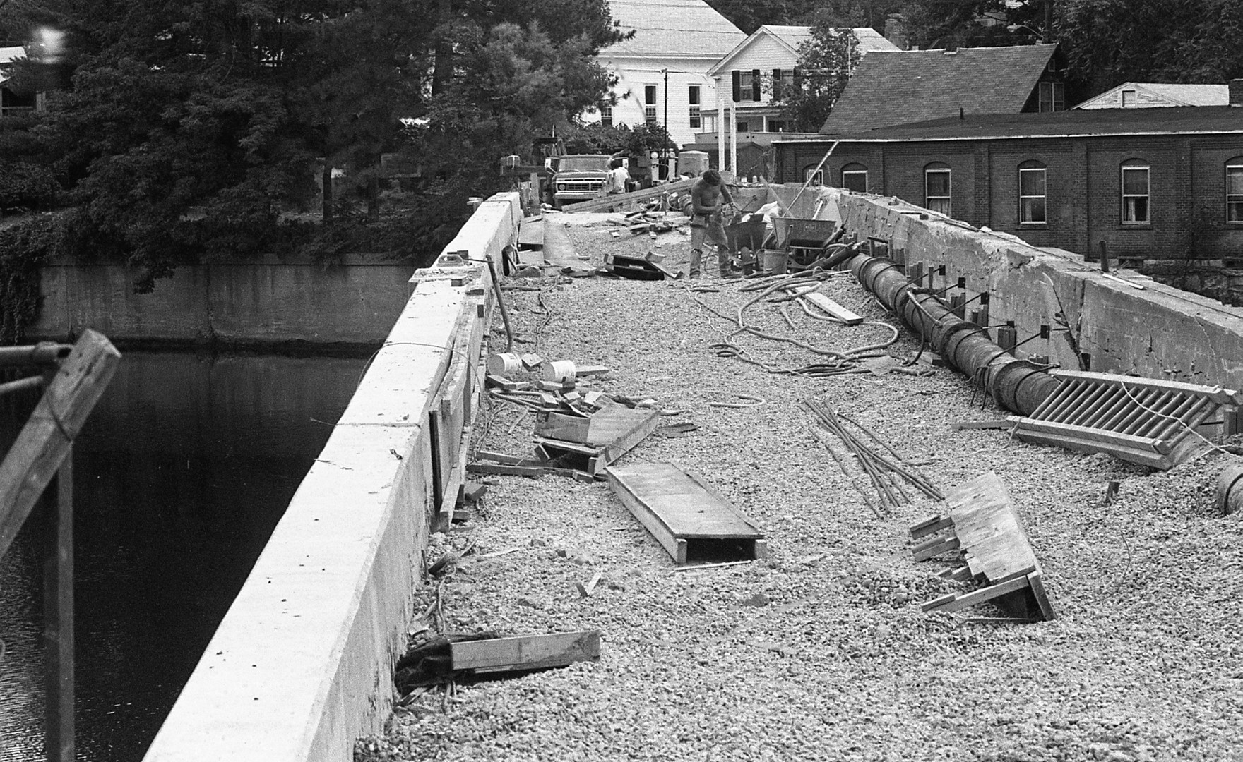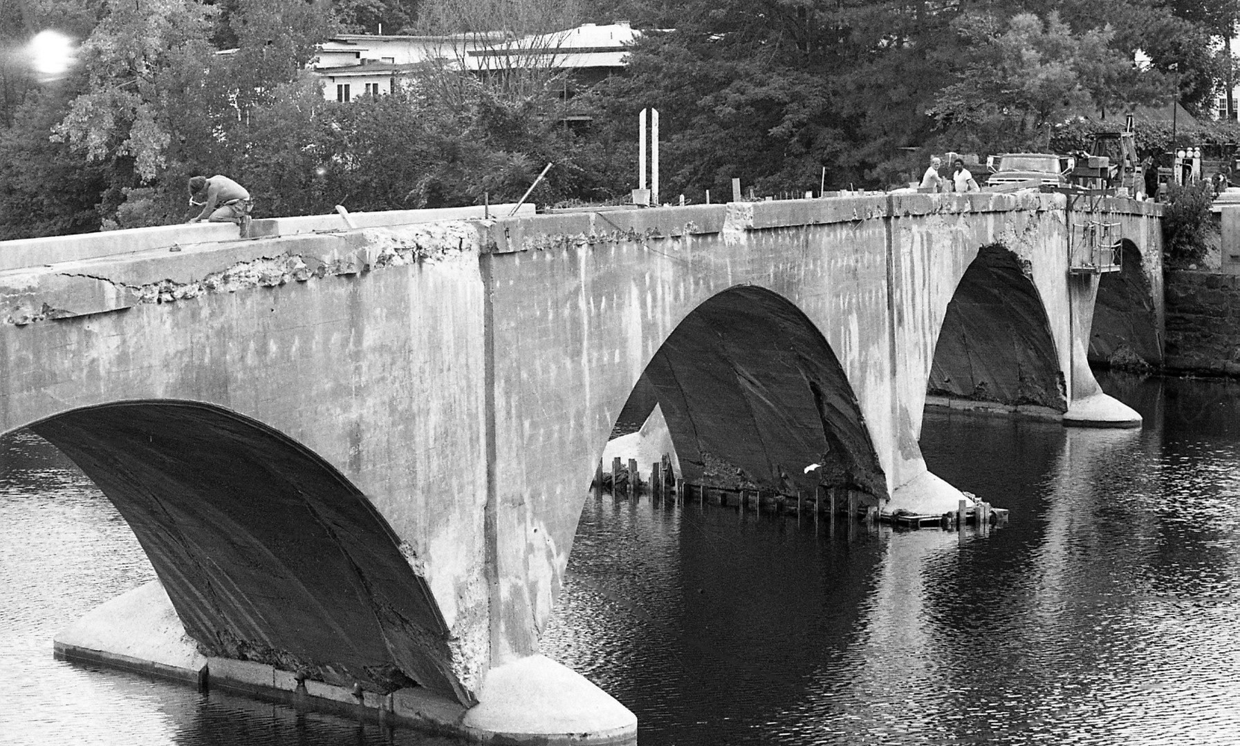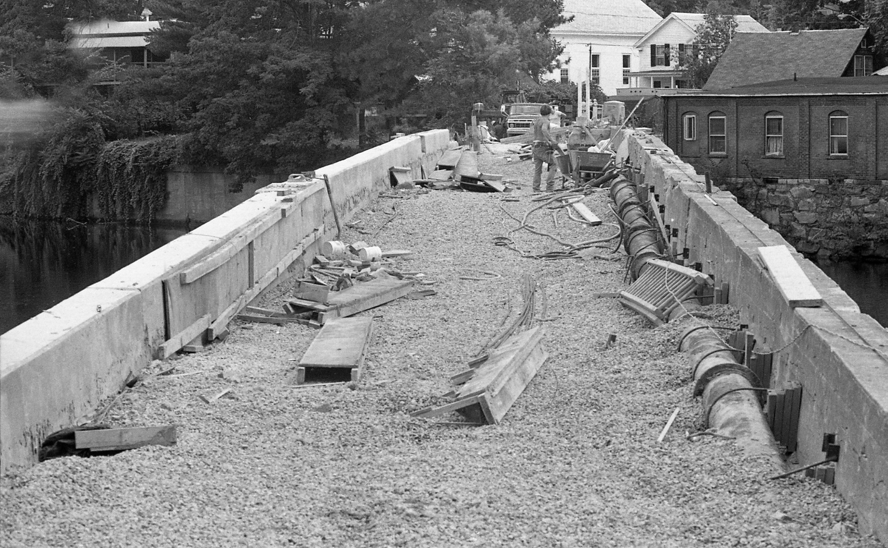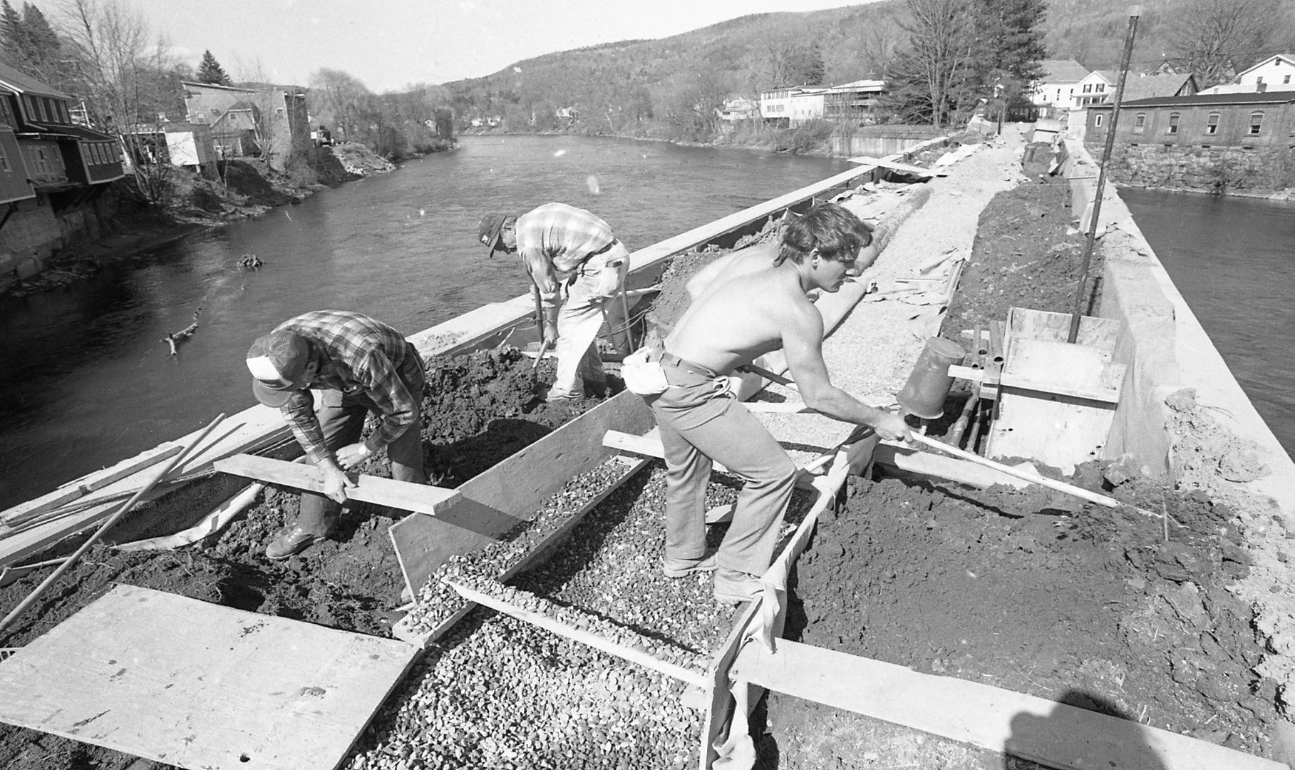 In 1975, a photographic study was conducted of Shelburne Falls. One of the concerns of the town was the deterioration of the bridge structure. In 1981, funds were raised by those who owned the bridge, and a study was commissioned. The study determined that $580,000 in repairs should be made to the bridge. Various organizations raised money and repairs began on May 2, 1983. During the restoration, every plant that was removed was cared for in private. The restoration replaced the 8-inch water line, which carries up to half a million gallons of water a day. The bridge also contains two and a half feet of soil at the top of the arches and nine feet deep at the piers. On August 28, 2011, rain runoff from Hurricane Irene (at that point a tropical storm) flooded the Deerfield River and engulfed the Bridge of Flowers. Source: Wikipedia