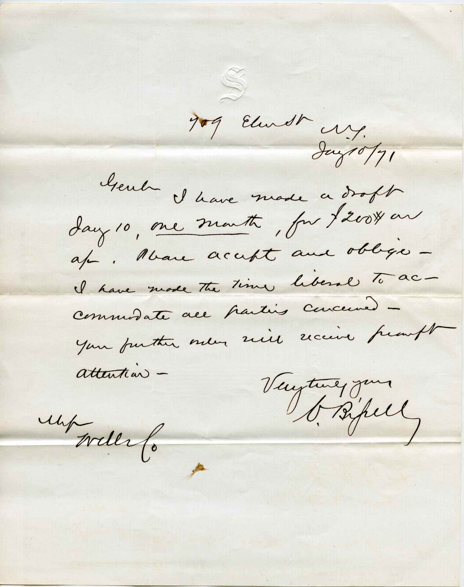 | dc.description.abstract | incoming correspondence to the papermaking company of Elisha Wells - circa 1870 | |